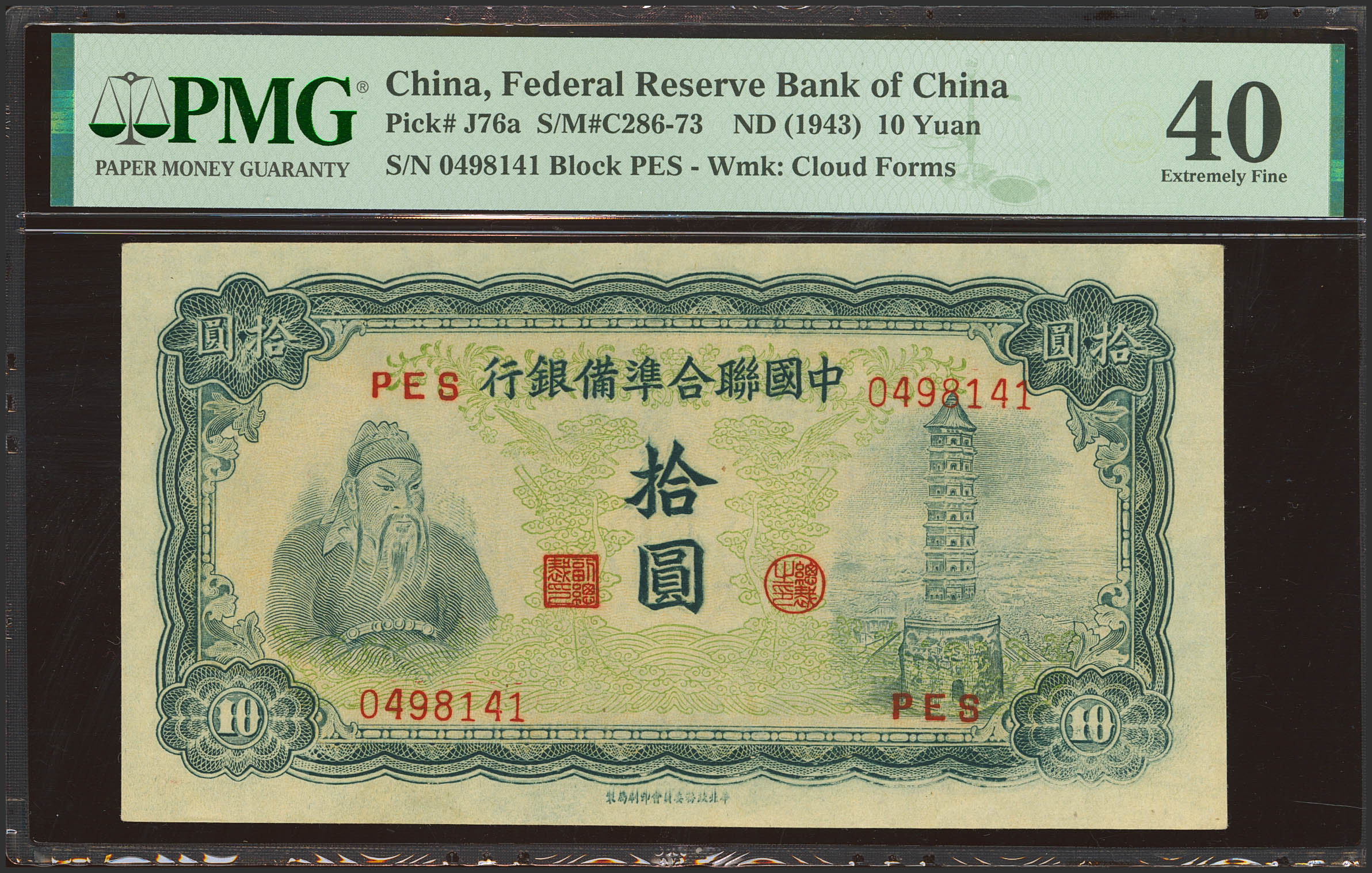 CHINA-PUPPET BANKS. 10 Yuan. (1943ca). Federal Reserve Bank. (Pick: J76a, SM: C286-73). PMG40.