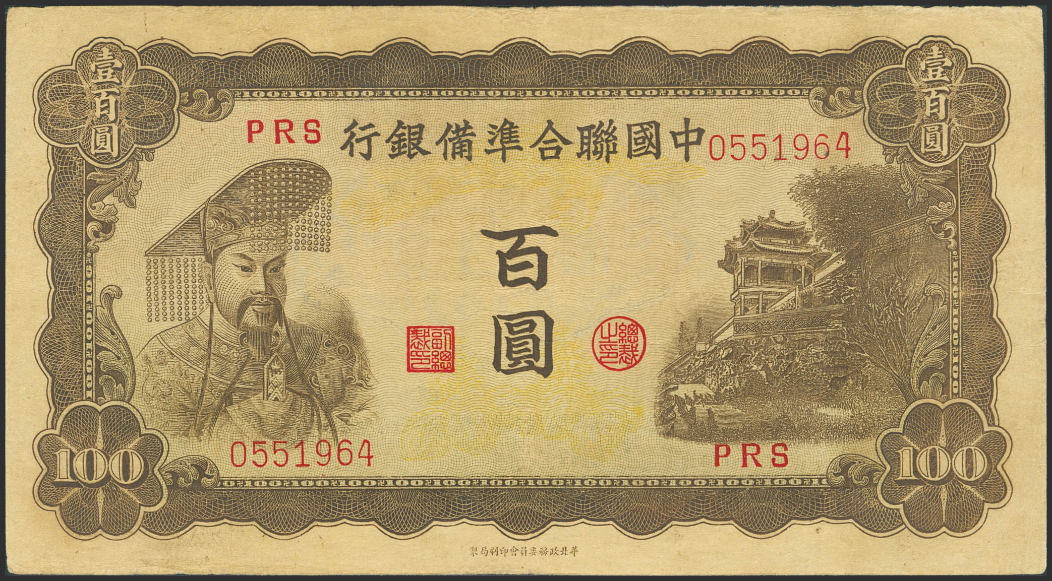 CHINA-PUPPET BANKS. 100 Yuan. (1943ca). Federal Reserve Bank. (Pick: J77a). More than Very Fine.