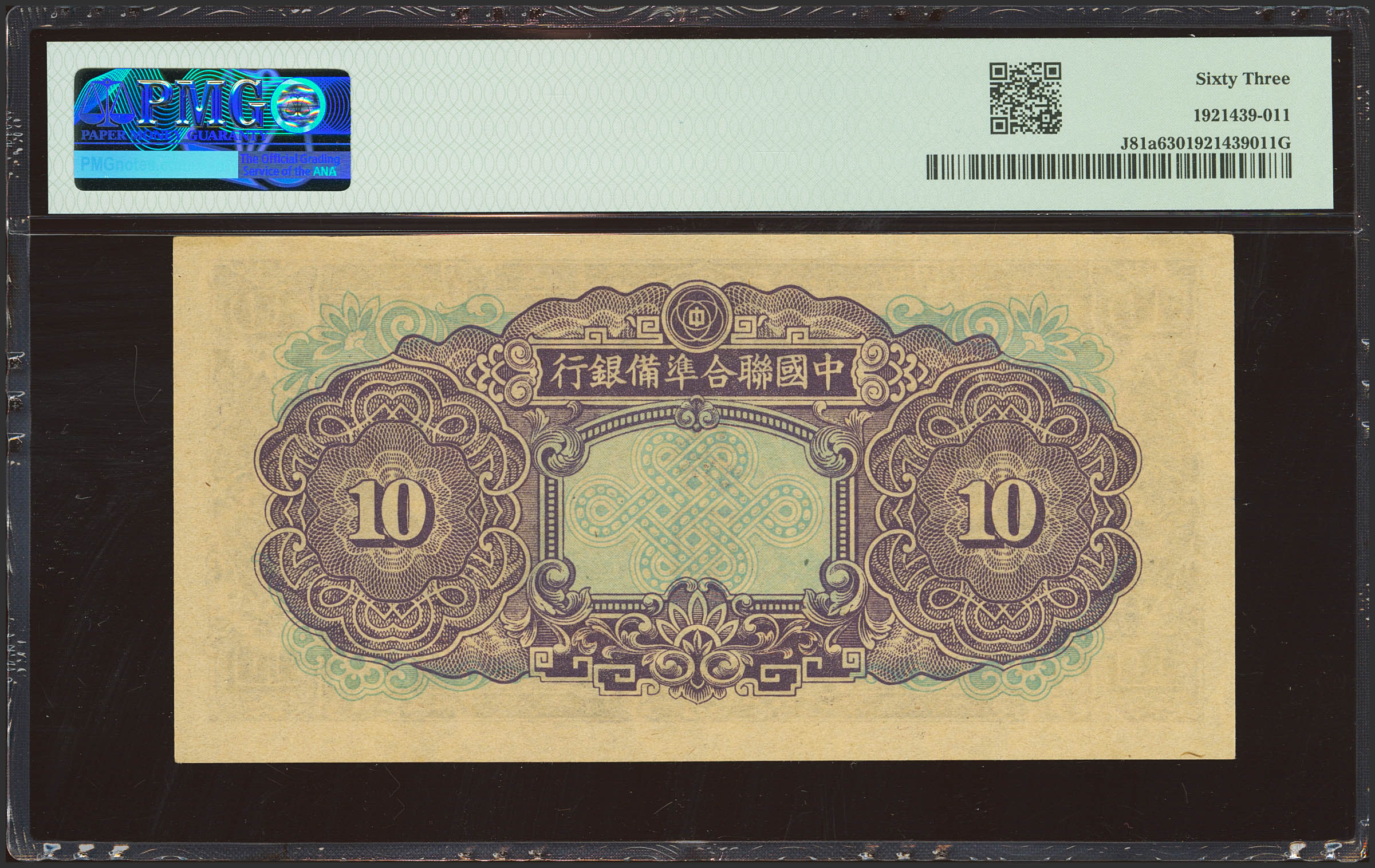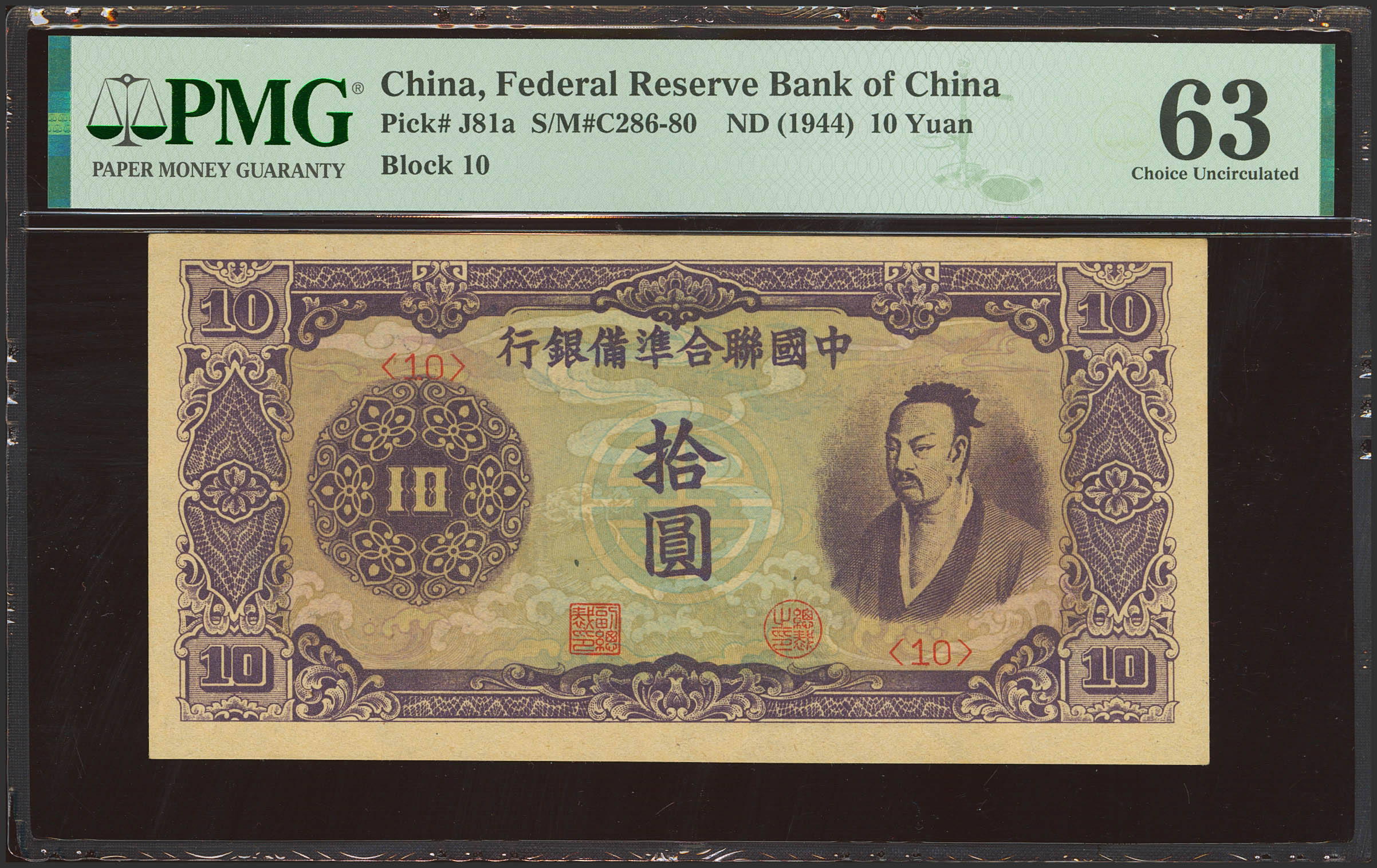 CHINA-PUPPET BANKS. 10 Yuan. (1944ca). Federal Reserve Bank. (Pick: J81a, SM: C286-80). PMG63.