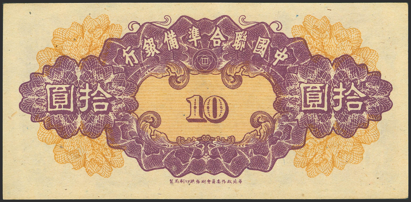 CHINA-PUPPET BANKS. 10 Yuan. (1945ca). Federal Reserve Bank. (Pick: J86b). Less than Uncirculated.