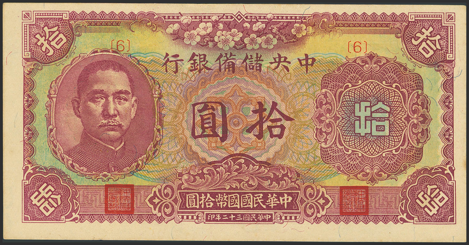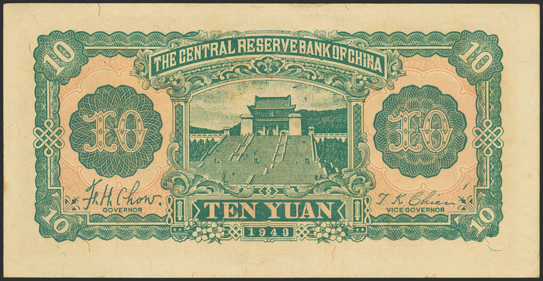 CHINA-PUPPET BANKS. 10 Yuan. 1943. Central Reserve Bank. (Pick: J20a). Less than Uncirculated.
