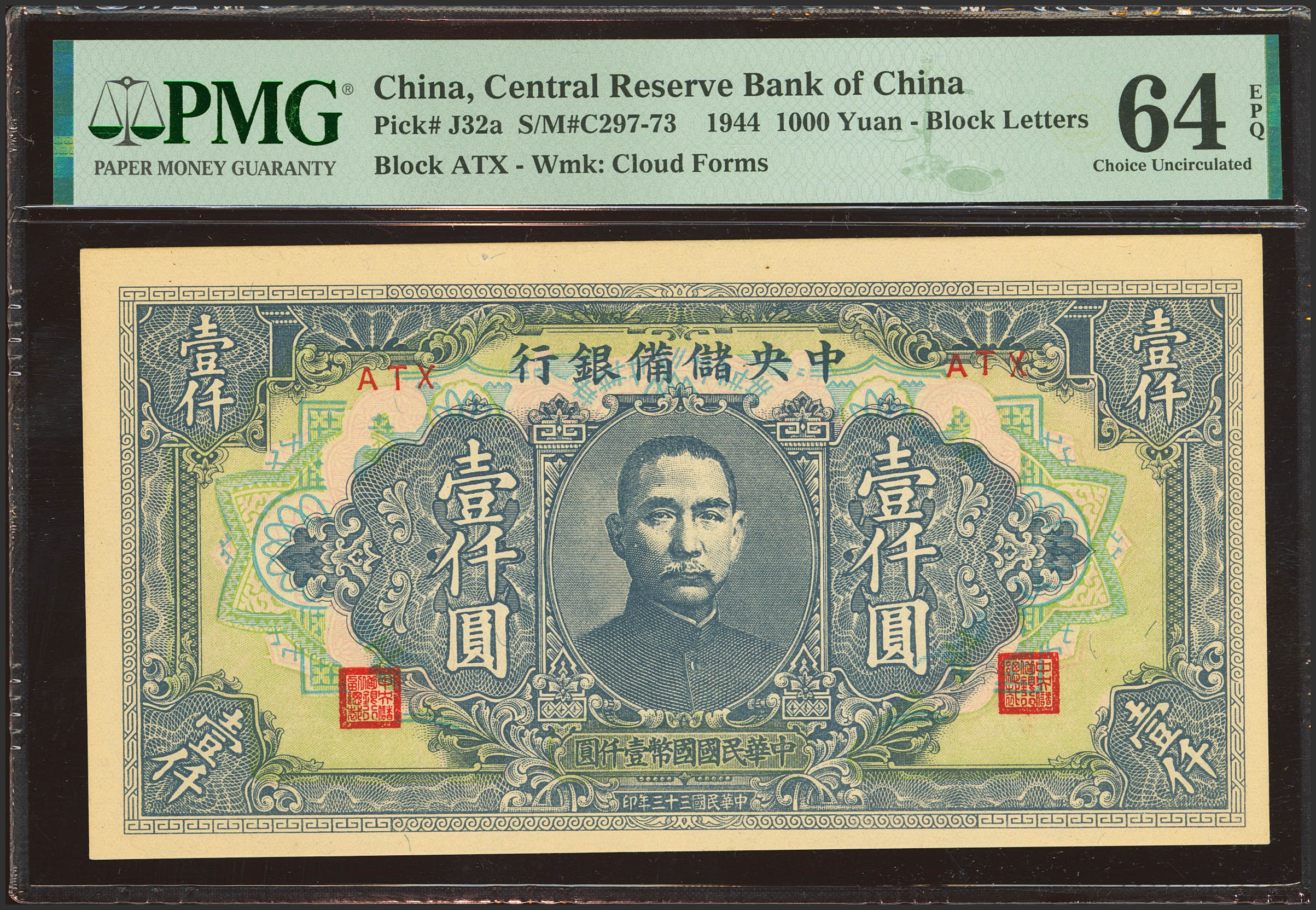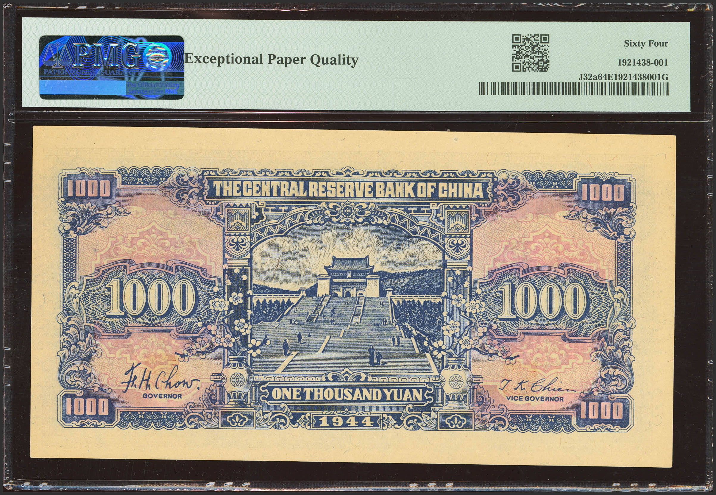 CHINA-PUPPET BANKS. 1000 Yuan. 1944. Central Reserve Bank. (Pick: J32b, SM: C297-73). PMG64EPQ.