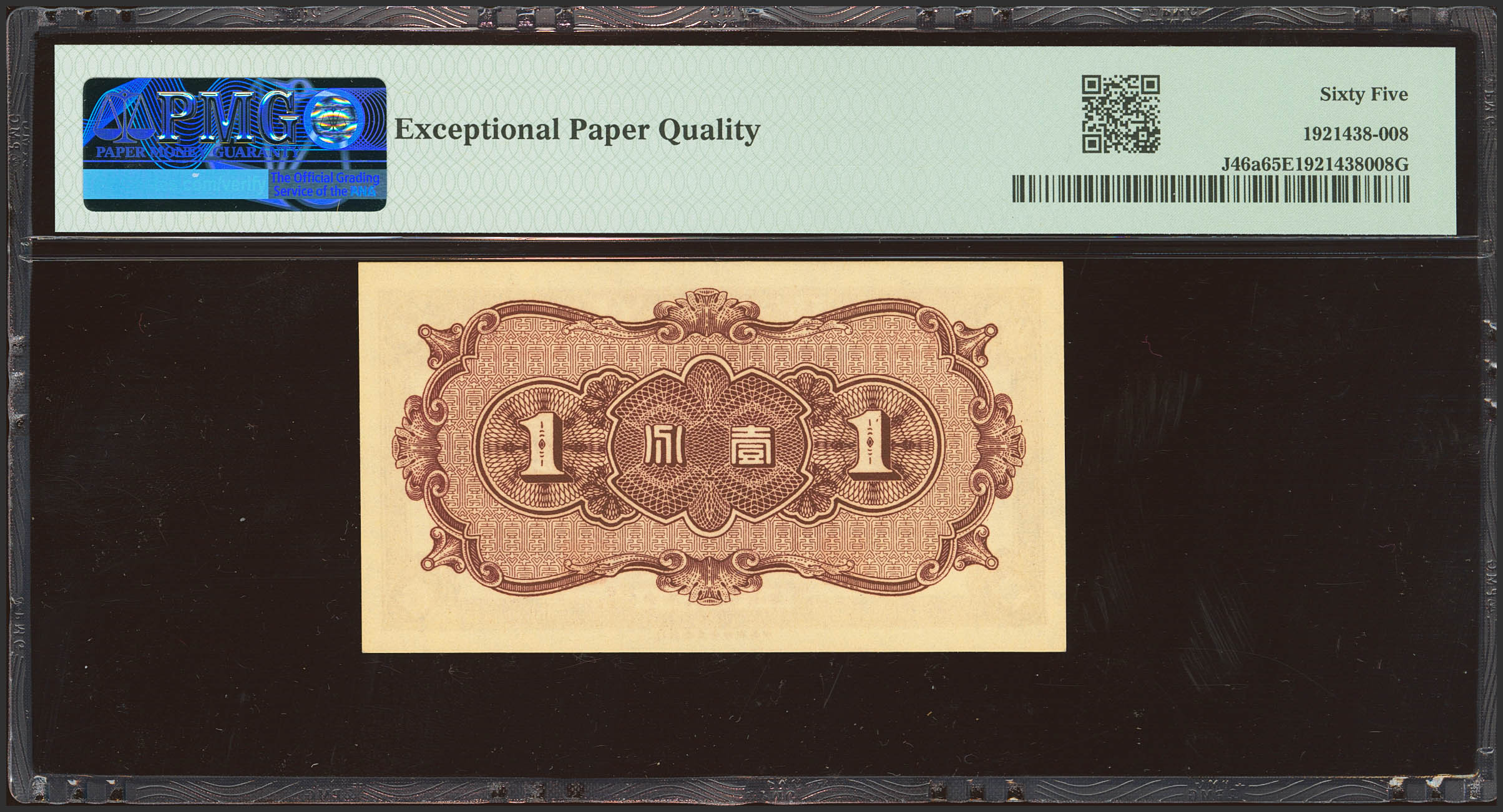 CHINA-PUPPET BANKS. 1 Fen. 1938. Federal Reserve Bank. (Pick: J46a, SM: C286-2). PMG65EPQ.