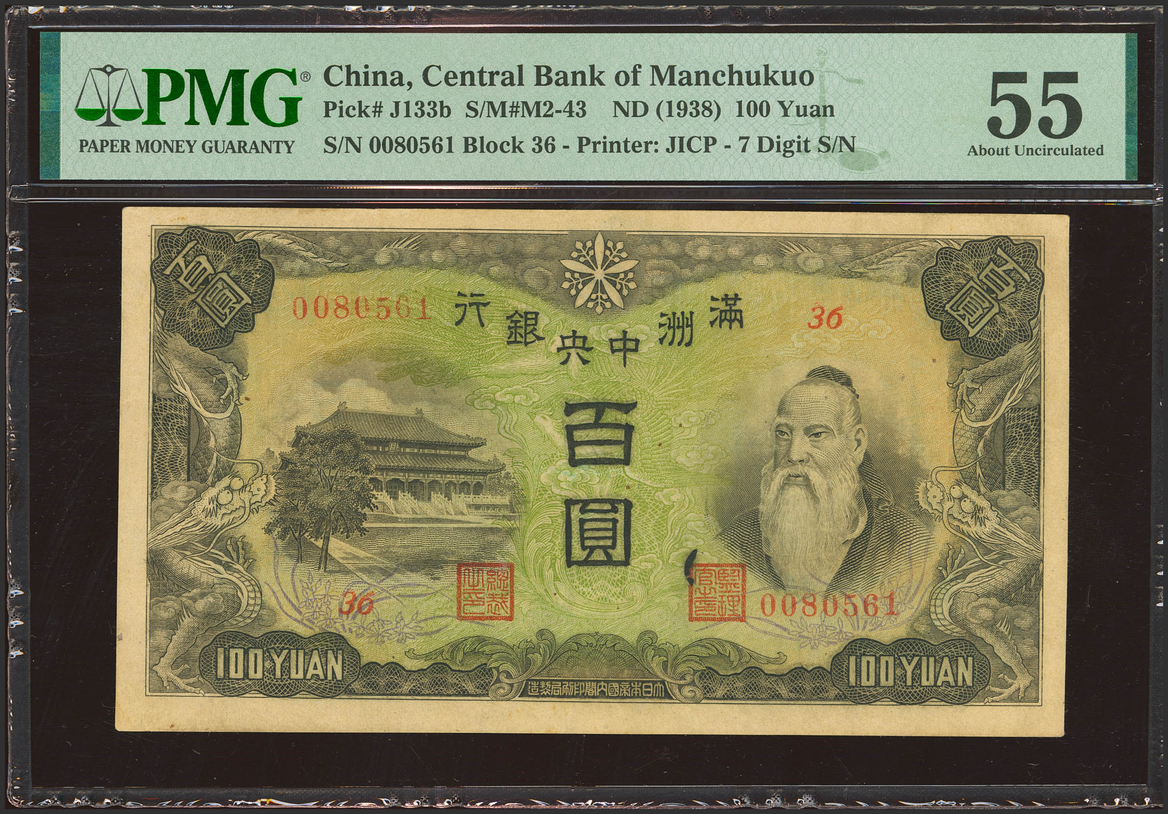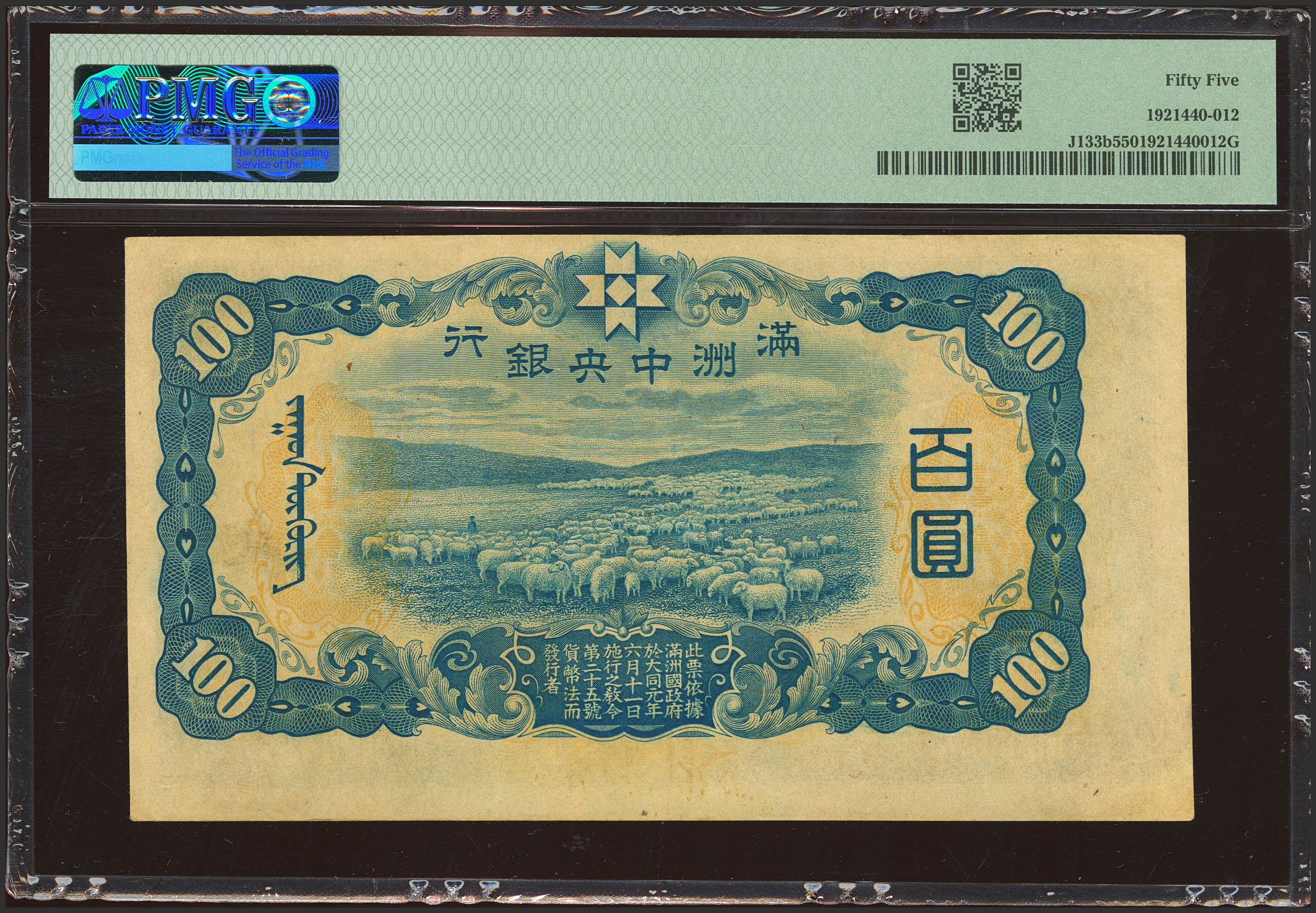 CHINA-MANCHUKUO. 100 Yuan. (1938ca). Central Bank of Manchukuo. (Pick: J133b, SM: 2-43). PMG55.