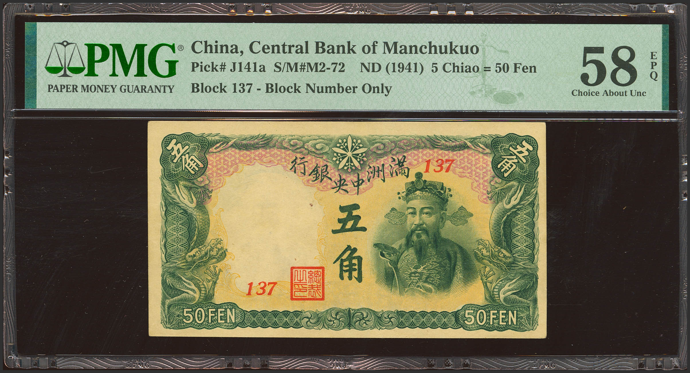 CHINA-MANCHUKUO. 50 Fen. (1944ca). Central Bank of Manchukuo. (Pick: J141a, SM: M2-72). PMG58EPQ.