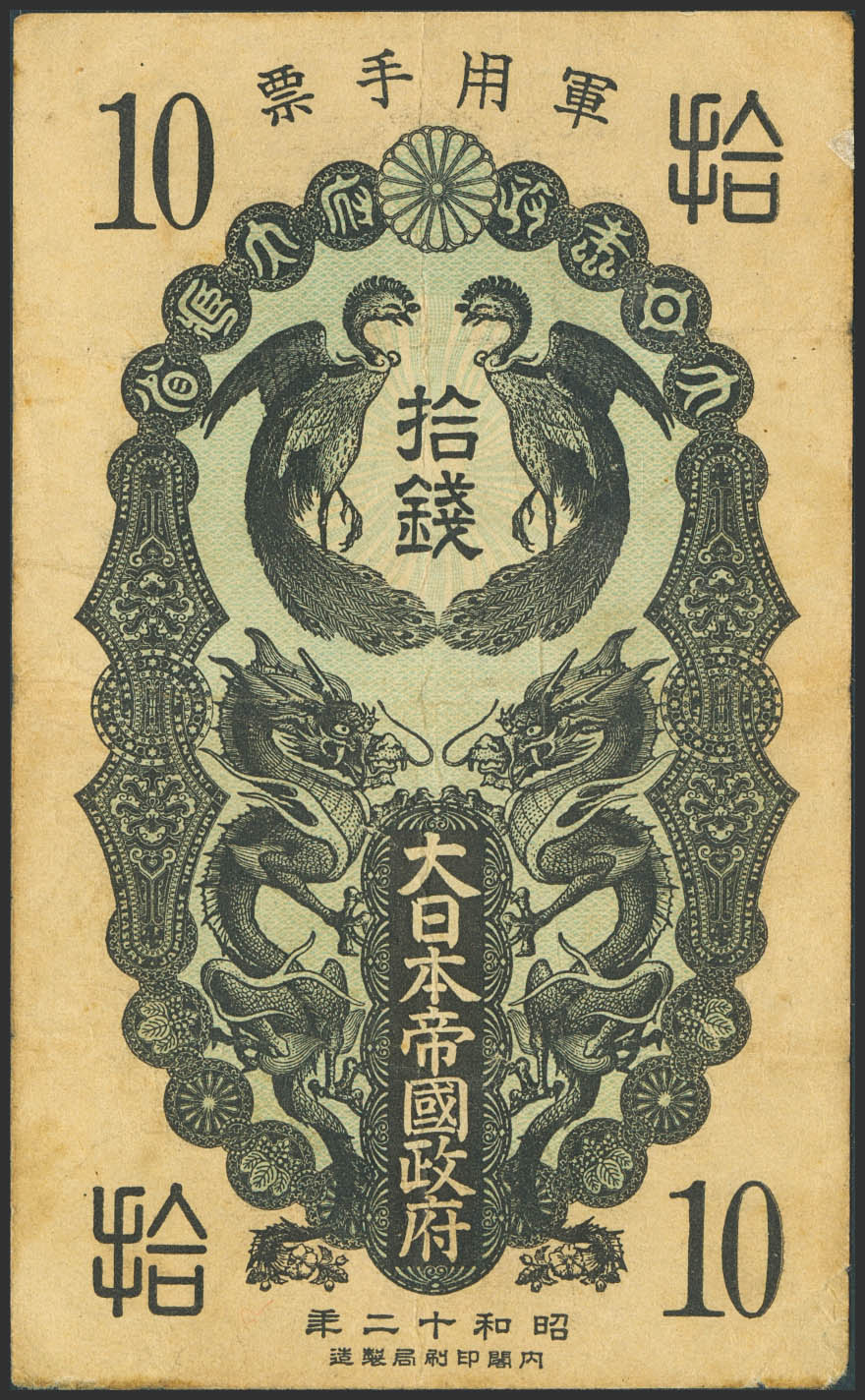 CHINA-JAPANESE MILITARY. 10 Sen. 1937. Japanese Imperial Government. (Pick: M1a). More than Very Fine.