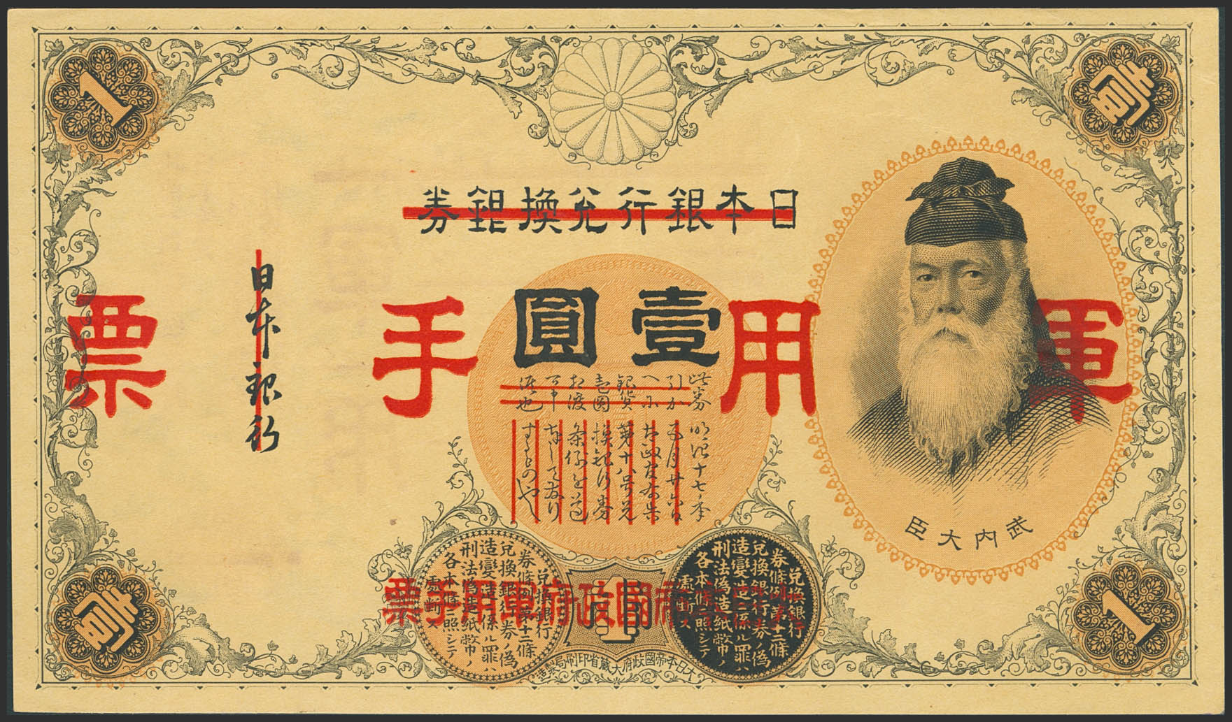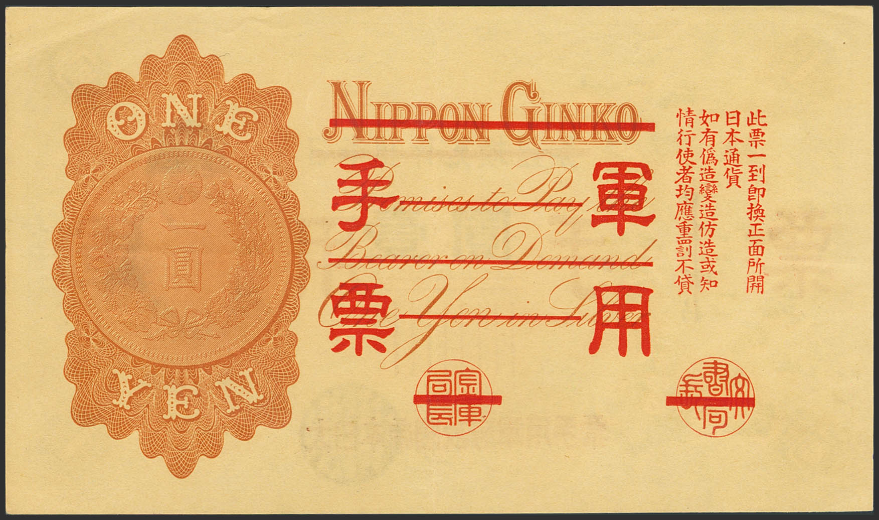 CHINA-JAPANESE MILITARY. 1 Yen. (1938ca). Japanese Imperial Government. (Pick: M22a). More than Extremely Fine.