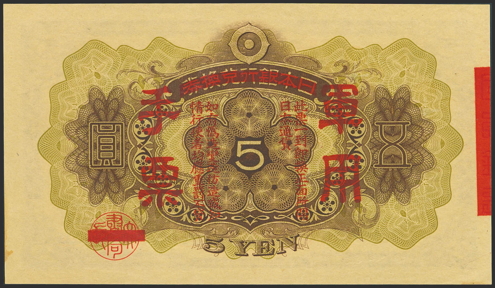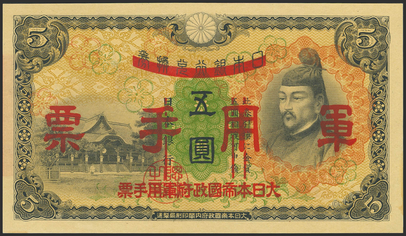 CHINA-JAPANESE MILITARY. 5 Yen. (1938ca). Japanese Imperial Government. (Pick: M24a). Less than Uncirculated.