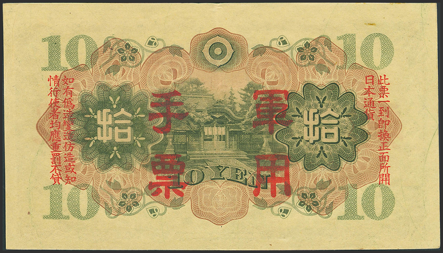 CHINA-JAPANESE MILITARY. 10 Yen. (1938ca). Japanese Imperial Government. (Pick: M27a). Almost Uncirculated.