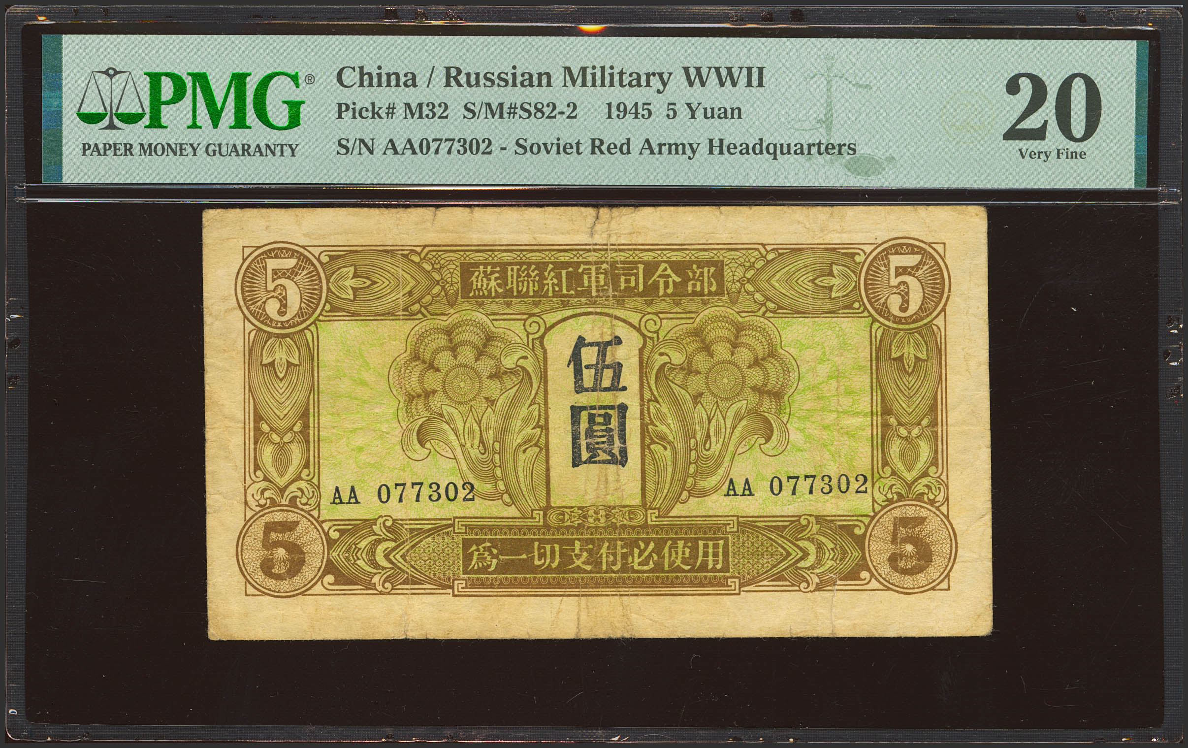 CHINA-SOVIET MILITARY. 5 Yuan. 1945. Soviet Red Army. (Pick: M32, SM: S82-2). PMG20.
