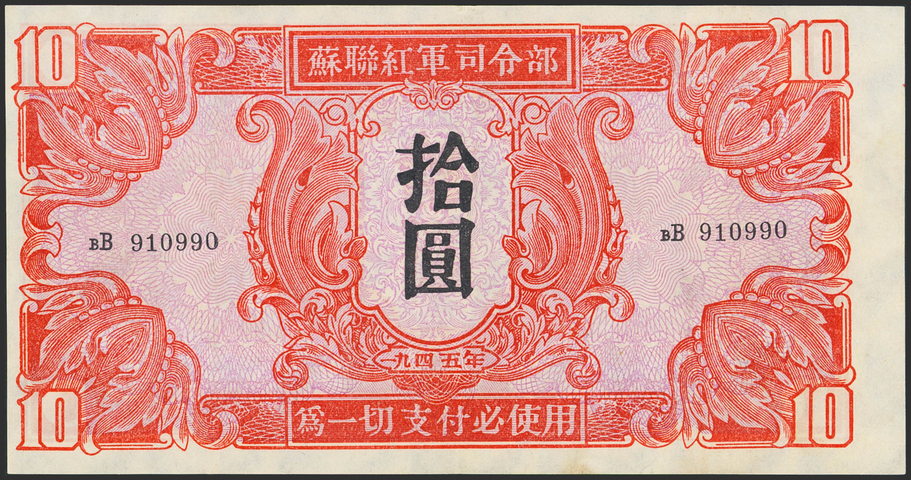 CHINA-SOVIET MILITARY. 10 Yuan. 1945. Soviet Red Army. (Pick: M33). More than Extremely Fine.