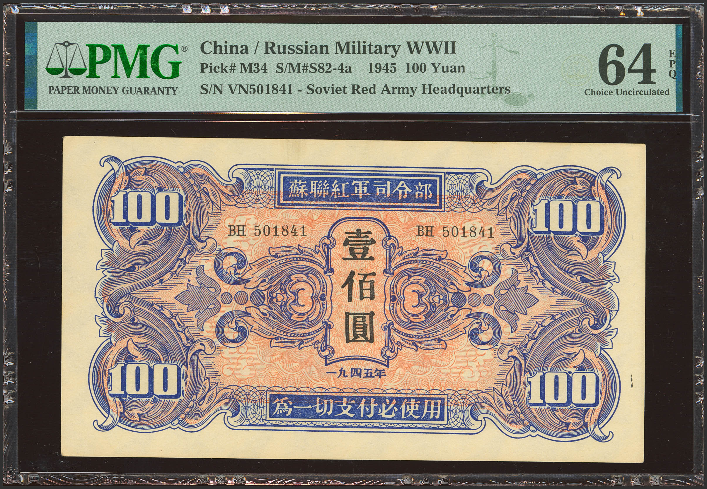 CHINA-SOVIET MILITARY. 100 Yuan. 1945. Soviet Red Army. (Pick: M34, SM: D82-4a). PMG64EPQ.