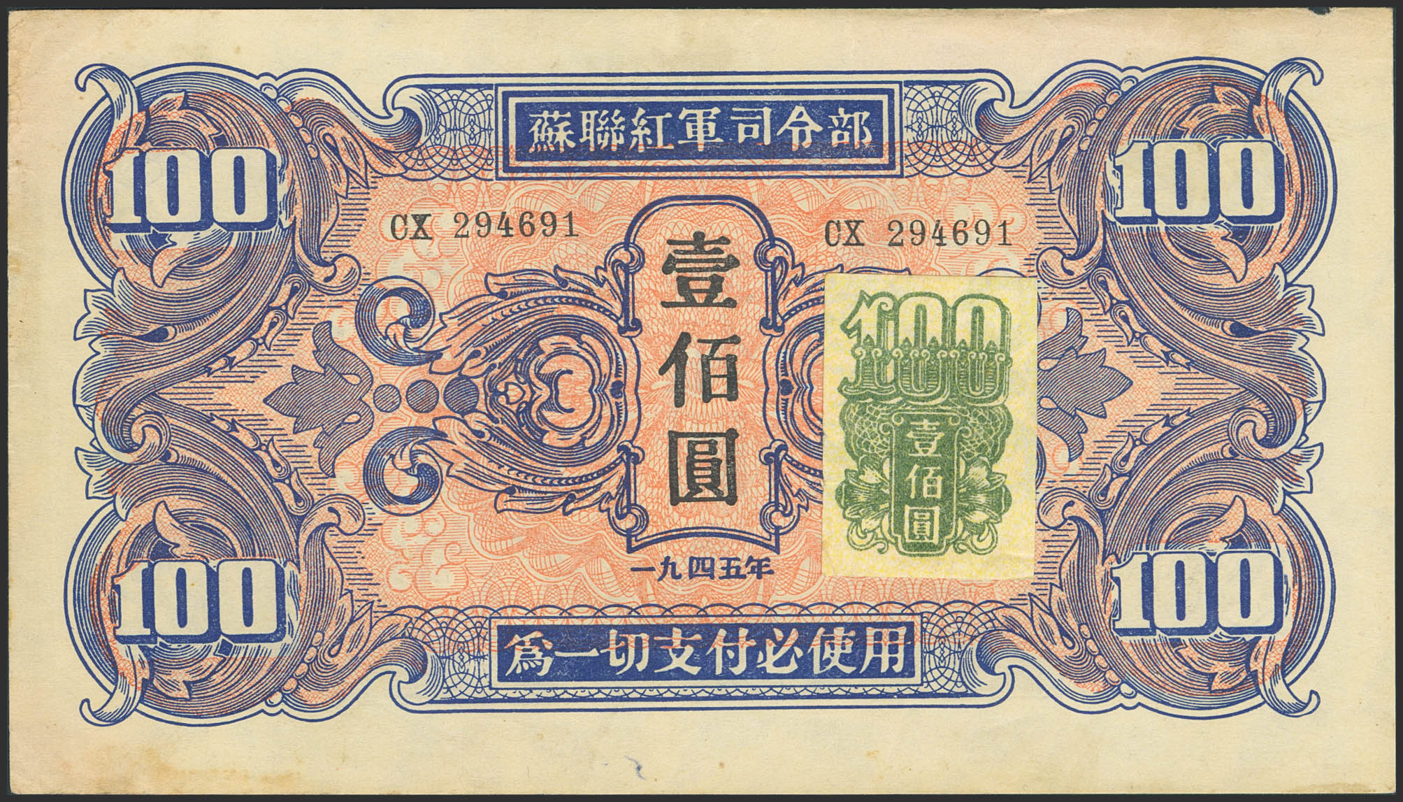 CHINA-SOVIET MILITARY. 100 Yuan. 1945. Soviet Red Army. (Pick: M36). Almost Uncirculated.