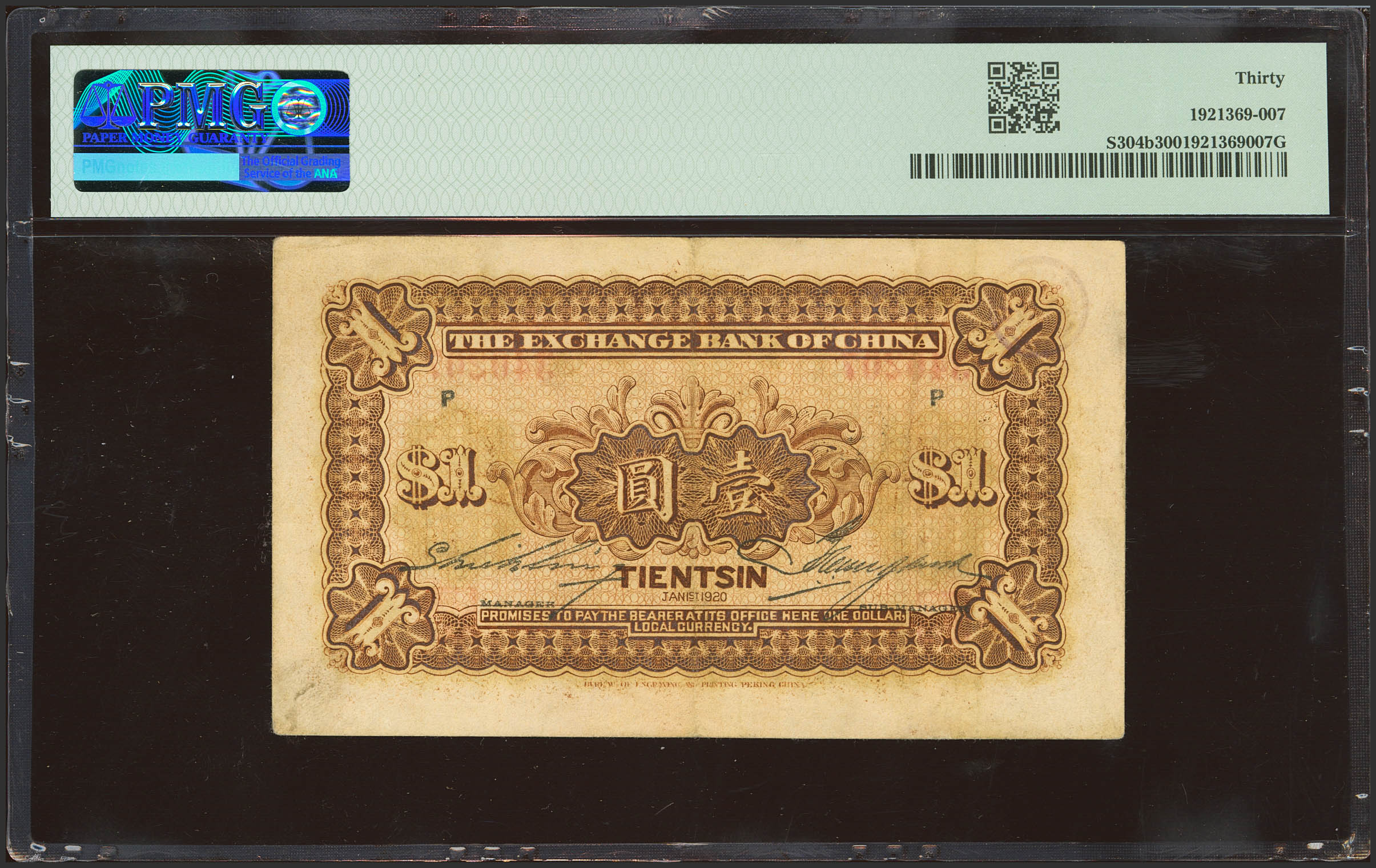 CHINA. 1 Dollar. 1 January 1920. Exchange Bank of China. (Pick: S304b, SM: C256-1b). PMG30.