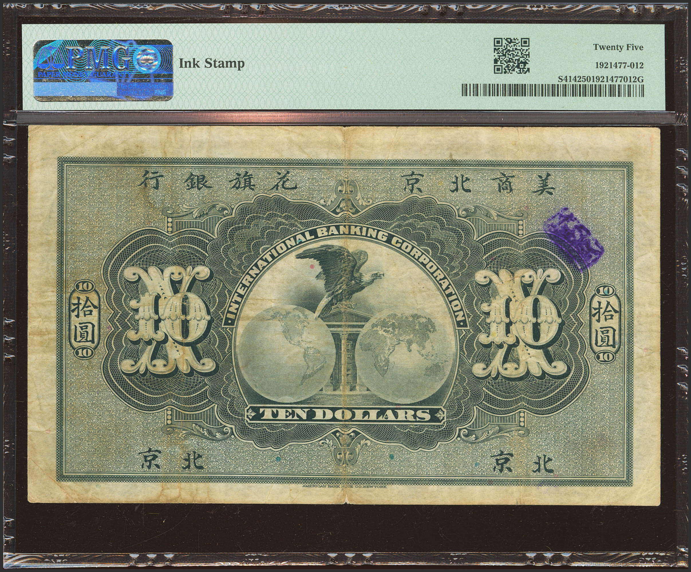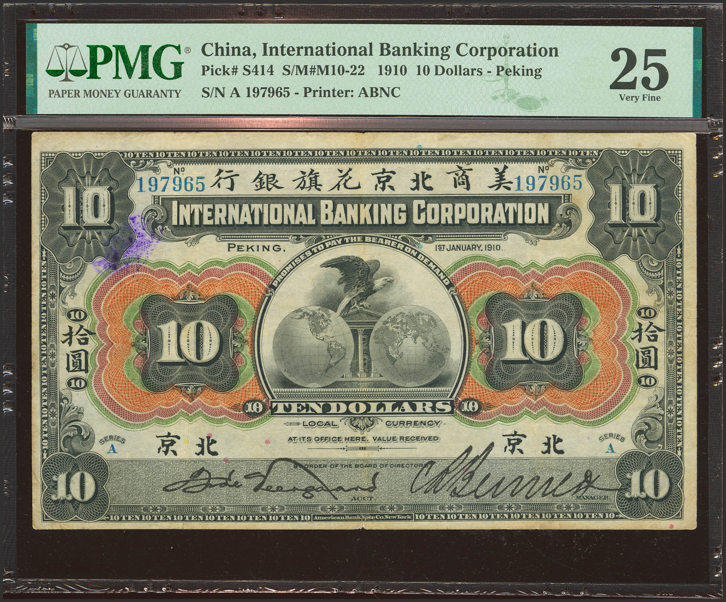 CHINA. 10 Dollars. 1 January 1910. International Banking Corporation. Peking. (Pick: S414, SM: M10-22). PMG25 (ink stamp).