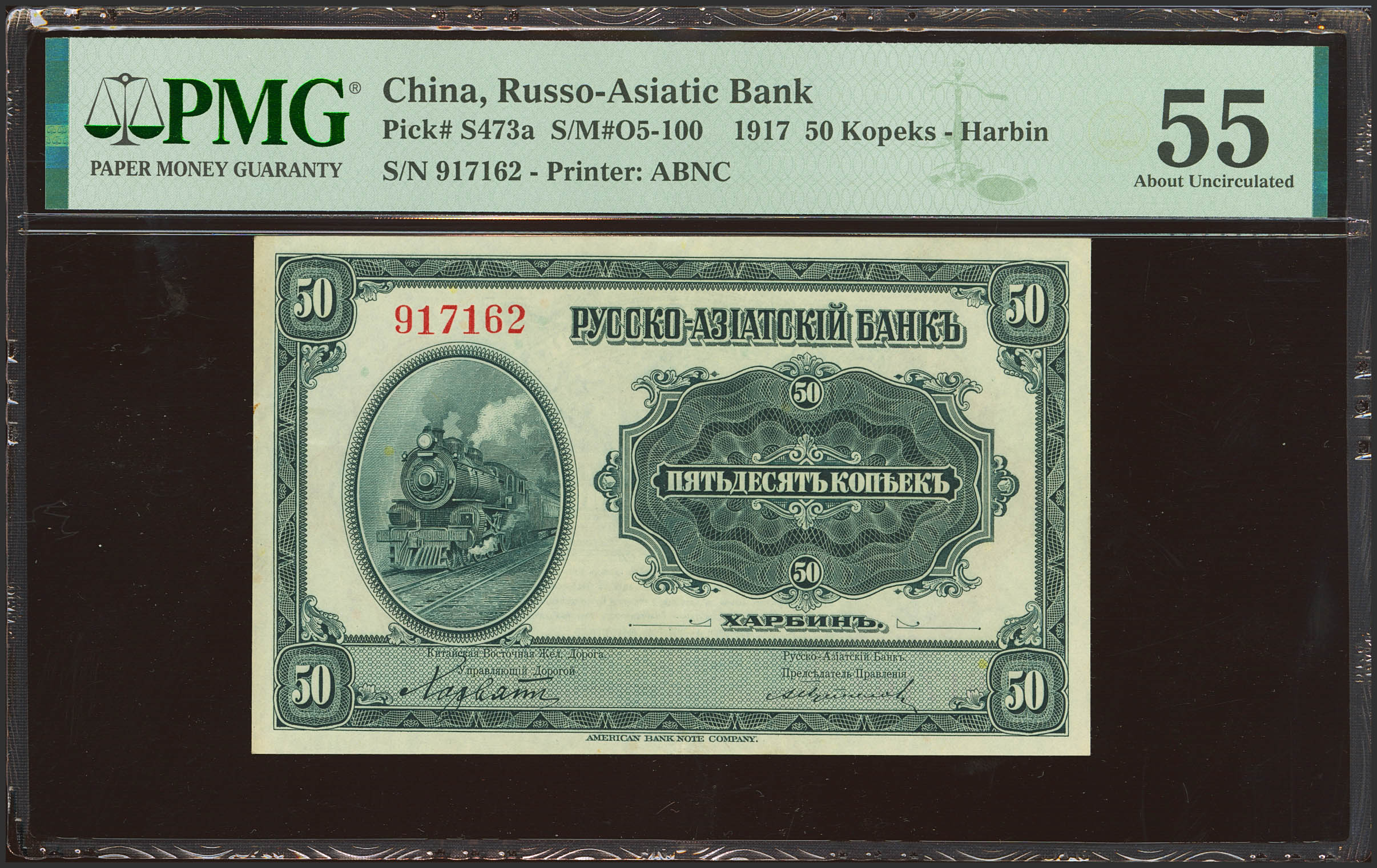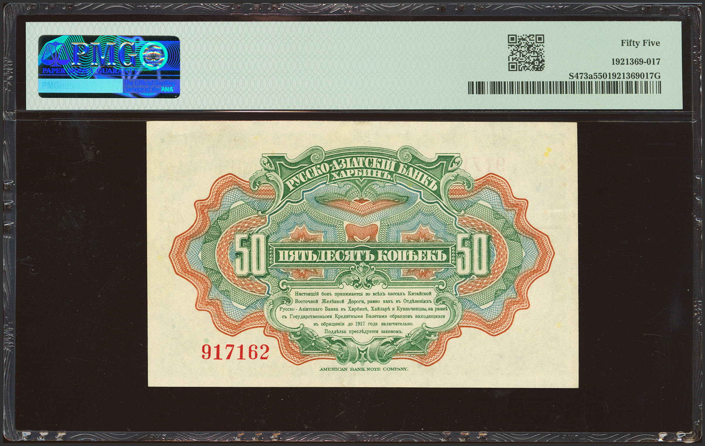 CHINA. 50 Kopeks. (1917ca). Russo Asiatic Bank. Harbin. (Pick: S473a, SM: O5-100). PMG55.