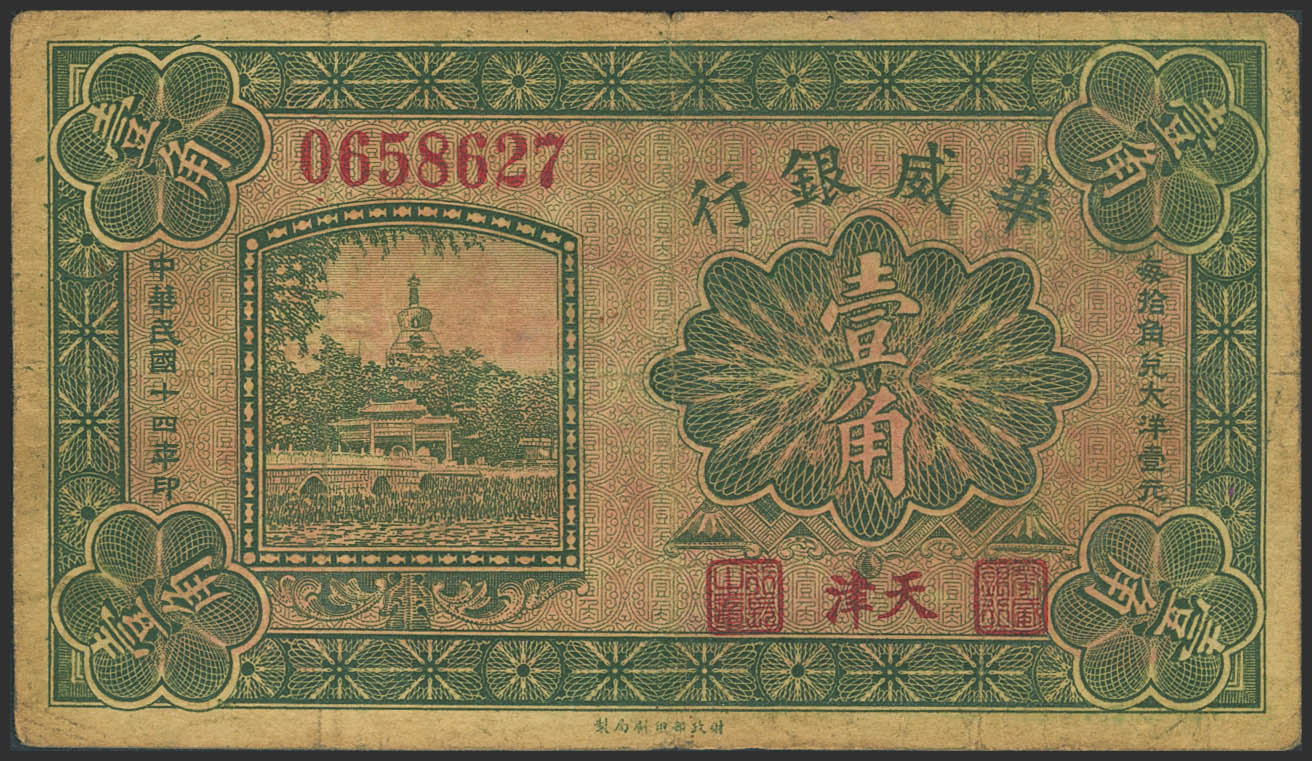 CHINA. 10 Cents. 1 October 1925. Sino-Scandinavian Bank. Tientsin. (Pick: S595). More than Fine.
