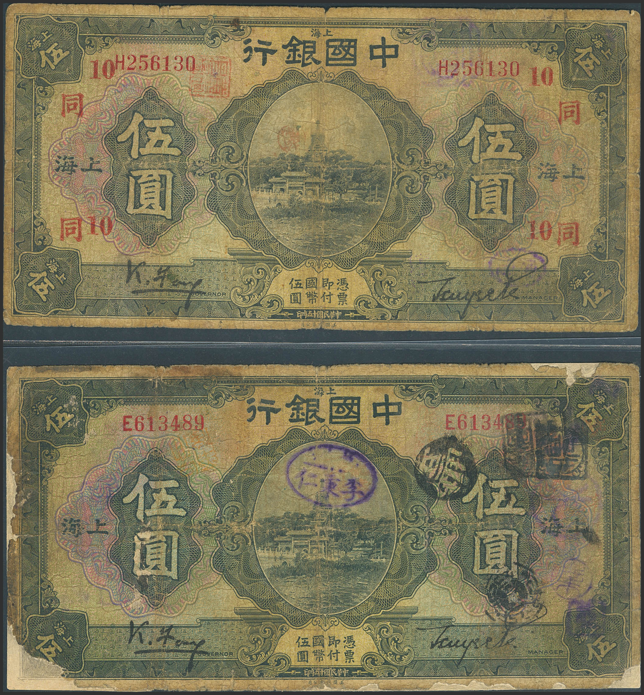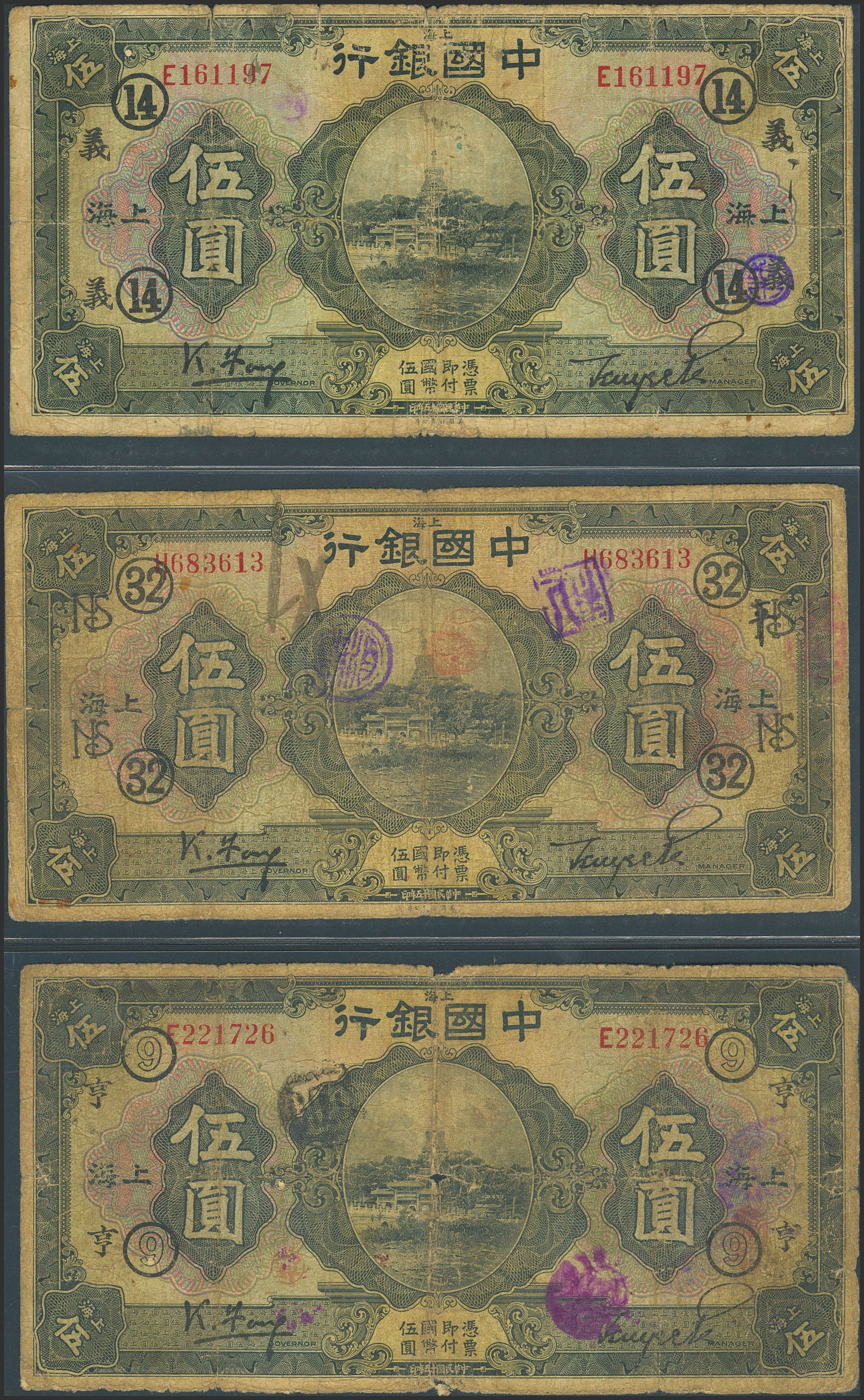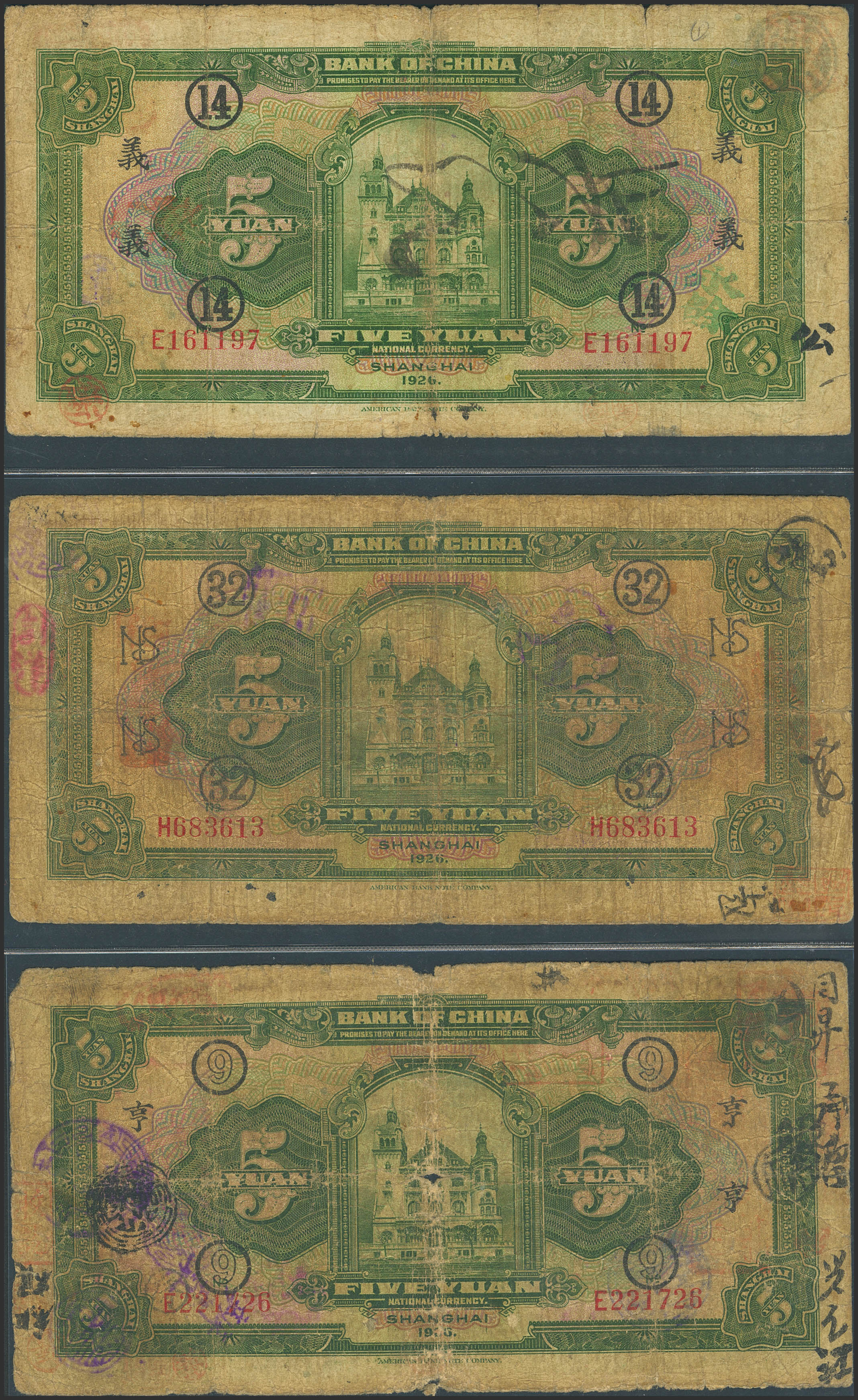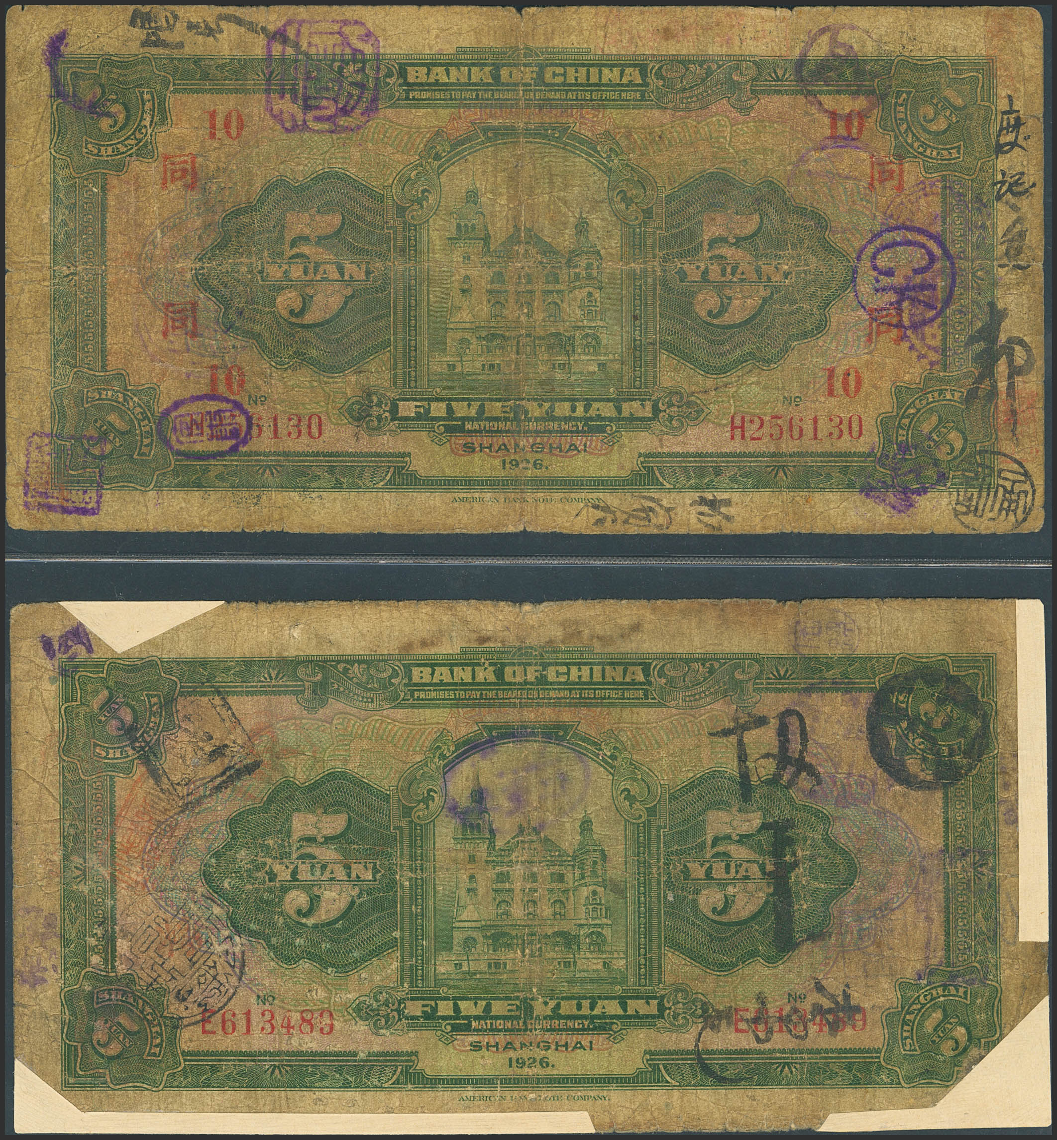 CHINA. Set of 5 notes of 5 Yuan. 1926. Bank of China. Shanghai. Feng Gengguang / Bei Zuyi. (Pick: 66a). Very Good to Fine.