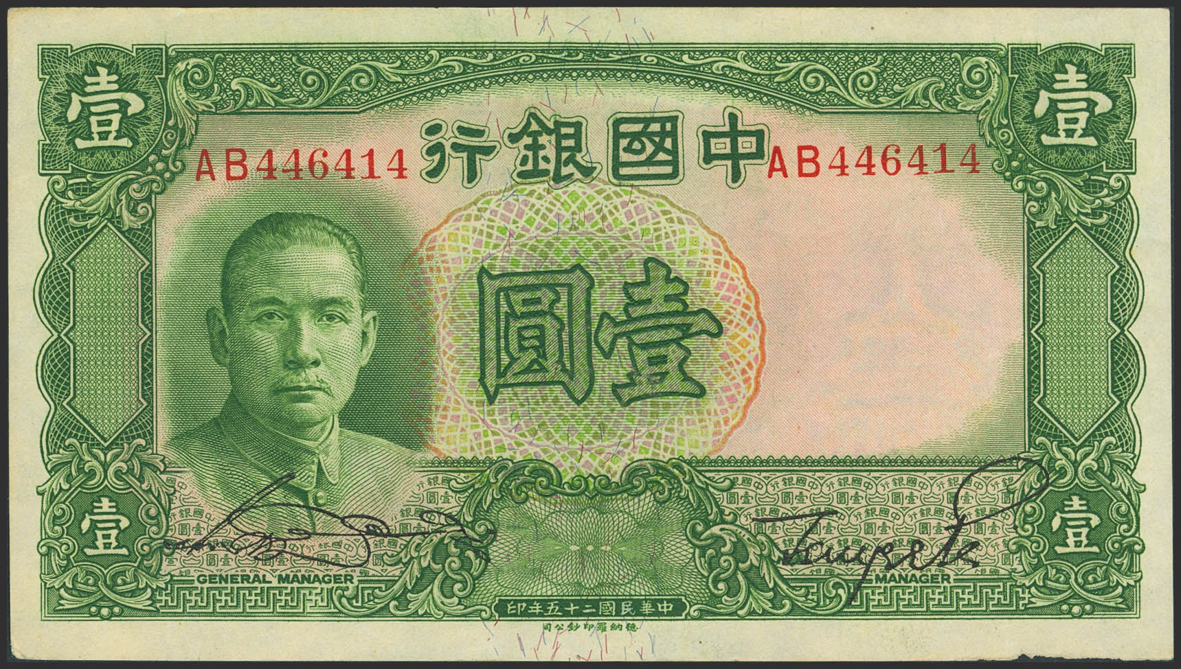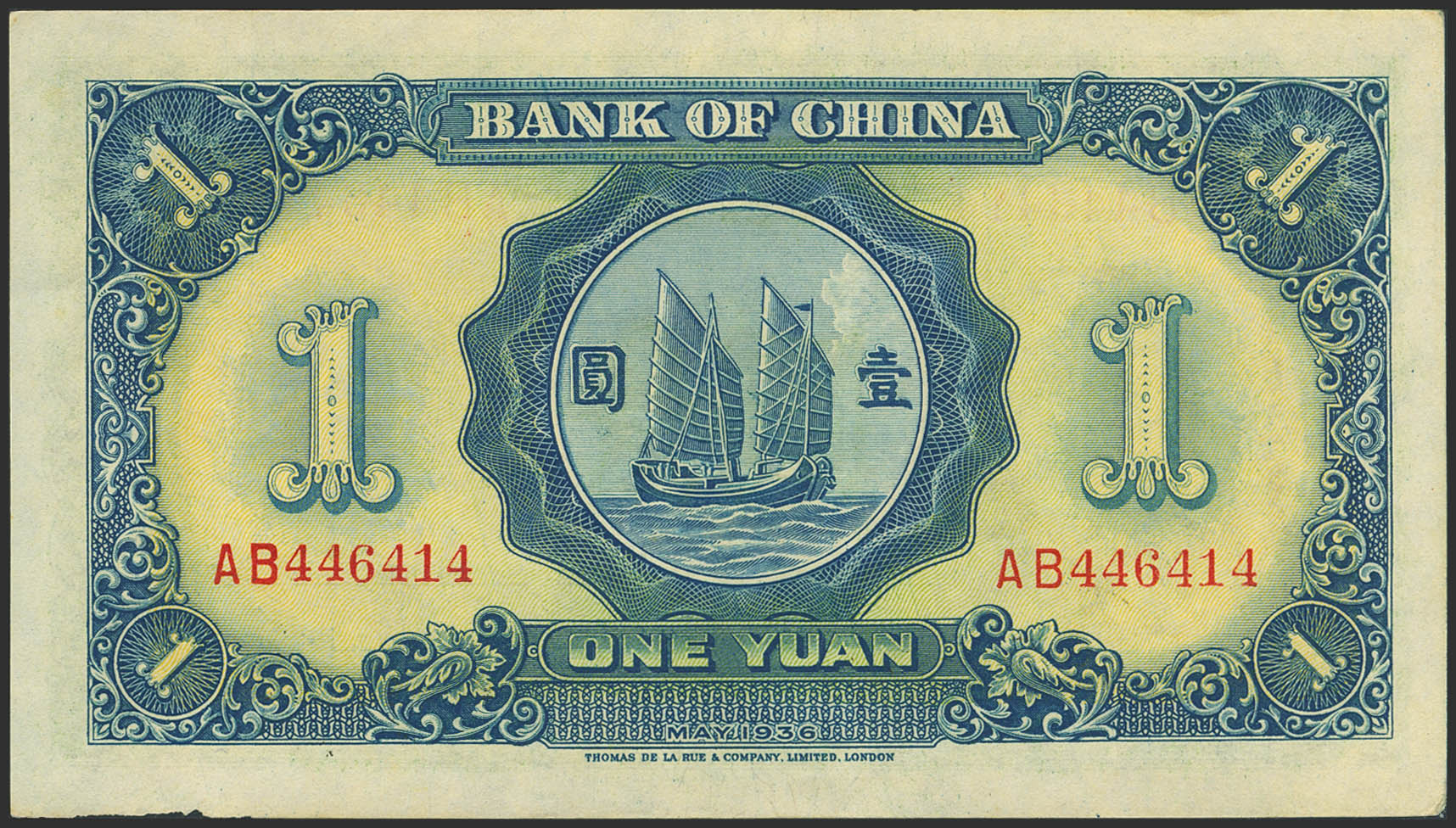 CHINA. 1 Yuan. May 1936. Bank of China. (Pick: 78). More than Extremely Fine.