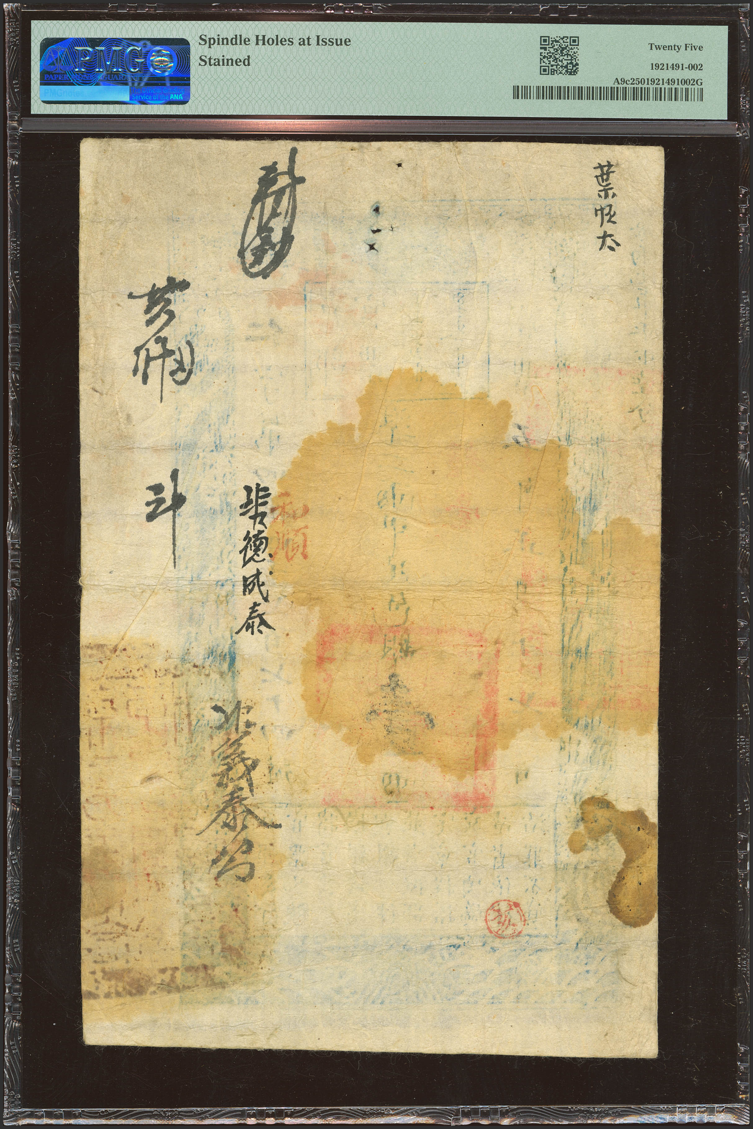CHINA. 1 Tael. 1855. Ministry of Interior and Finance, Ch'ing Dynasty. (Pick: A9c, SM: H176-20). PMG25 (spindle holes at issue, stained).