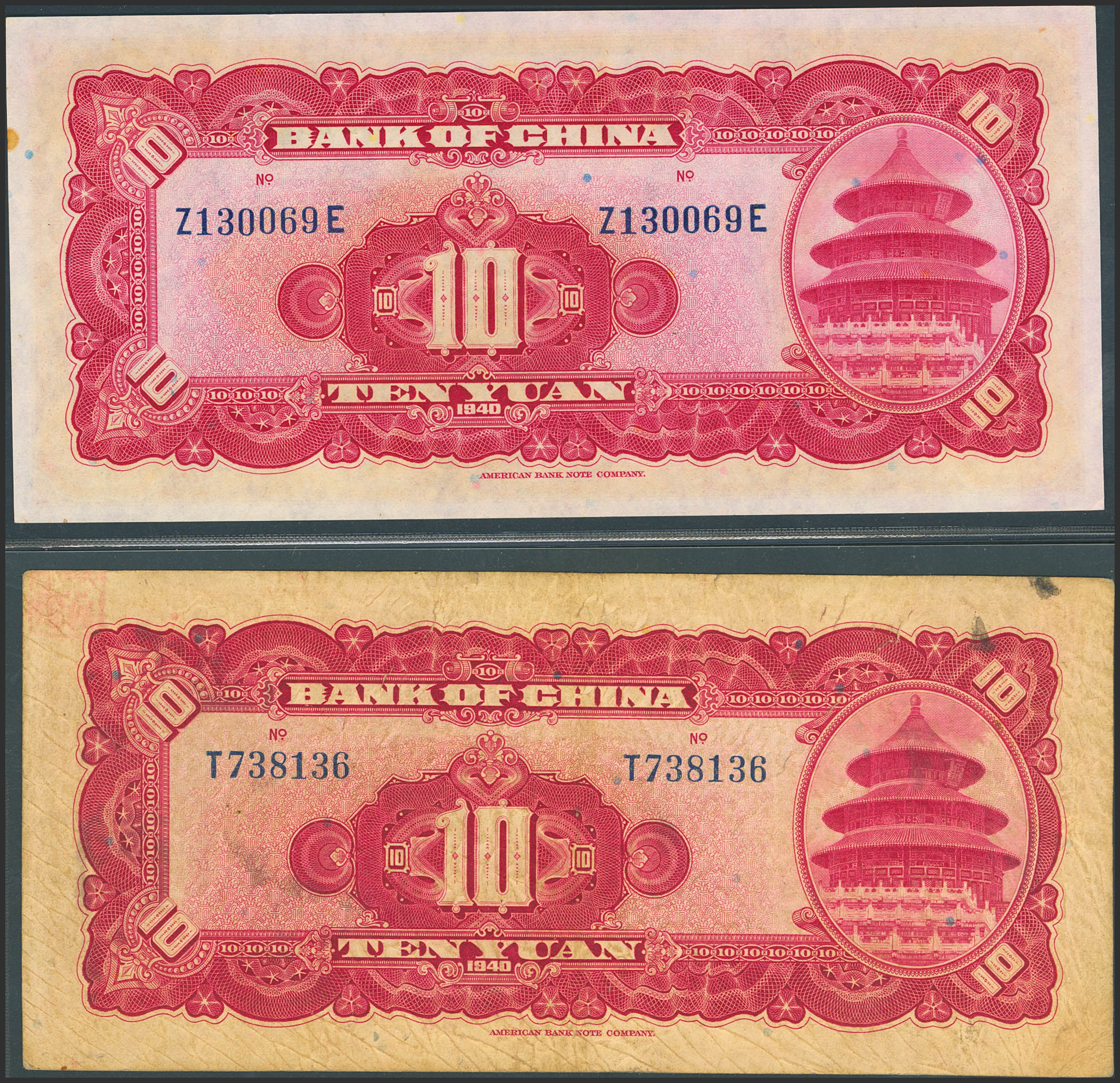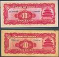 CHINA. Set of 2 notes of 10 Yuan. 1940. Bank of China. (Pick: 85b). About Uncirculated and Fine / Very Fine.
