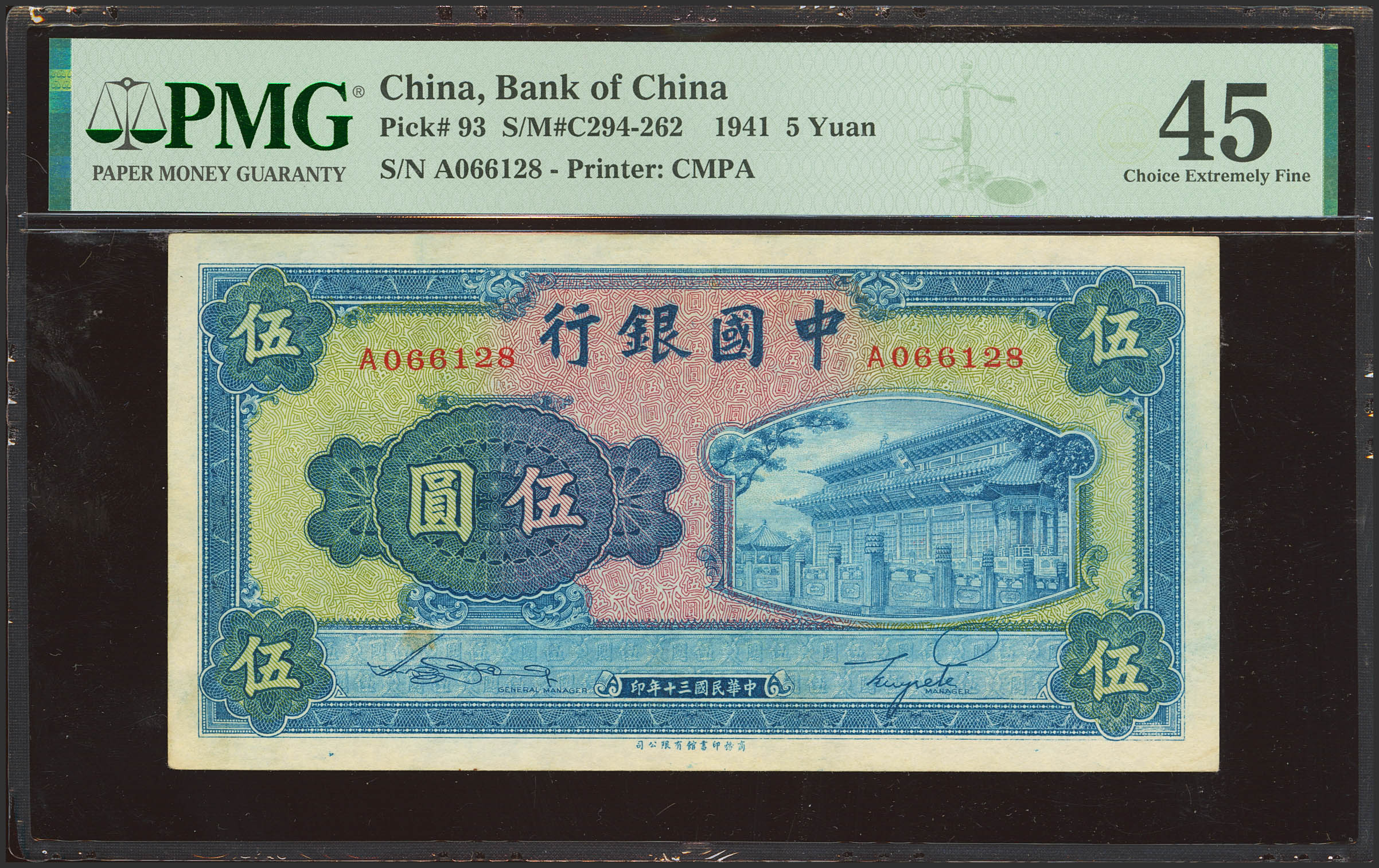 CHINA. 5 Yuan. 1941. Bank of China. (Pick: 93, SM: C294-262). PMG45.