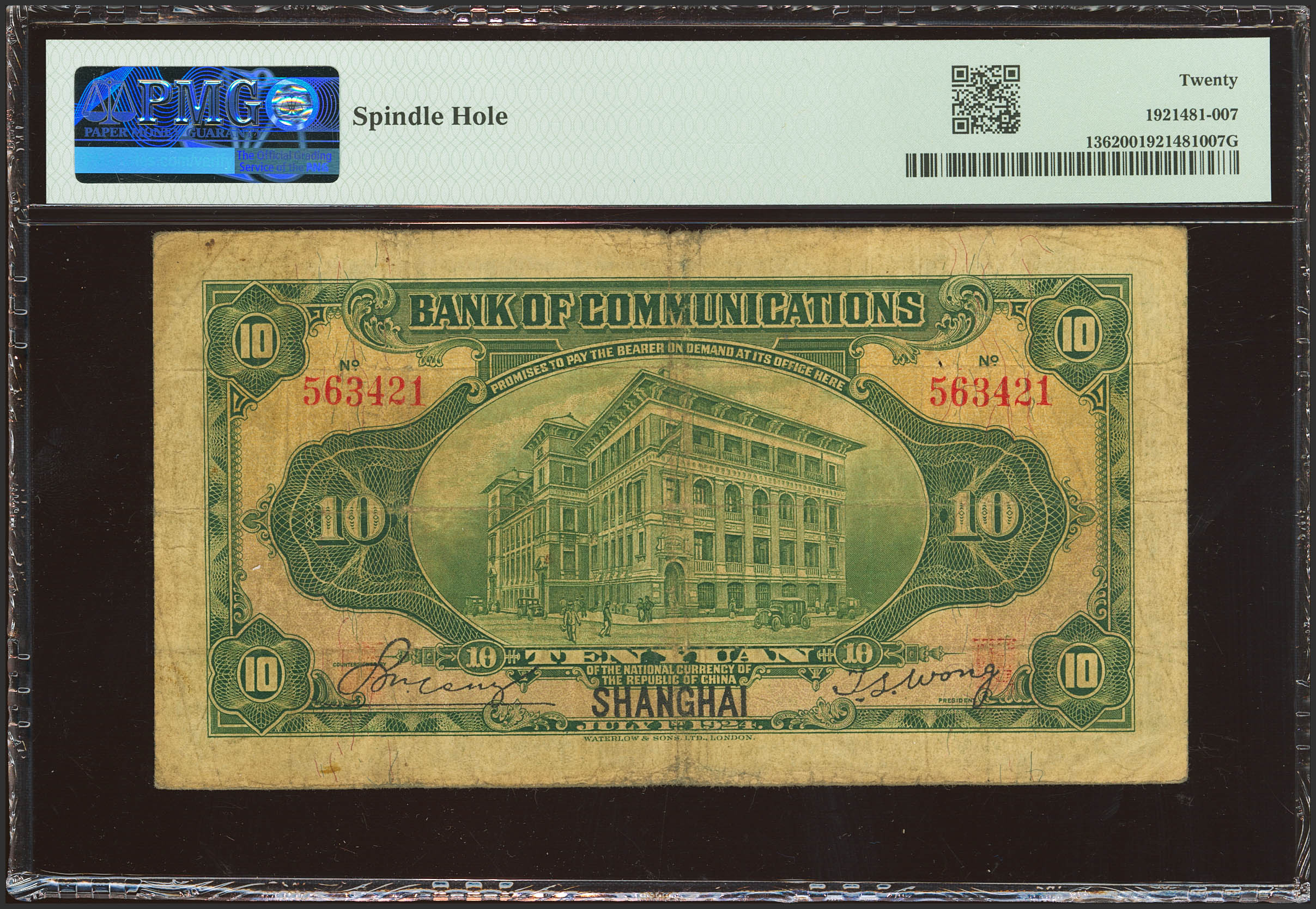 CHINA. 10 Yuan. 1 July 1924. Shanghai. Bank of Communications. (Pick: 136, SM: C126-162). PMG20 (spindle hole).