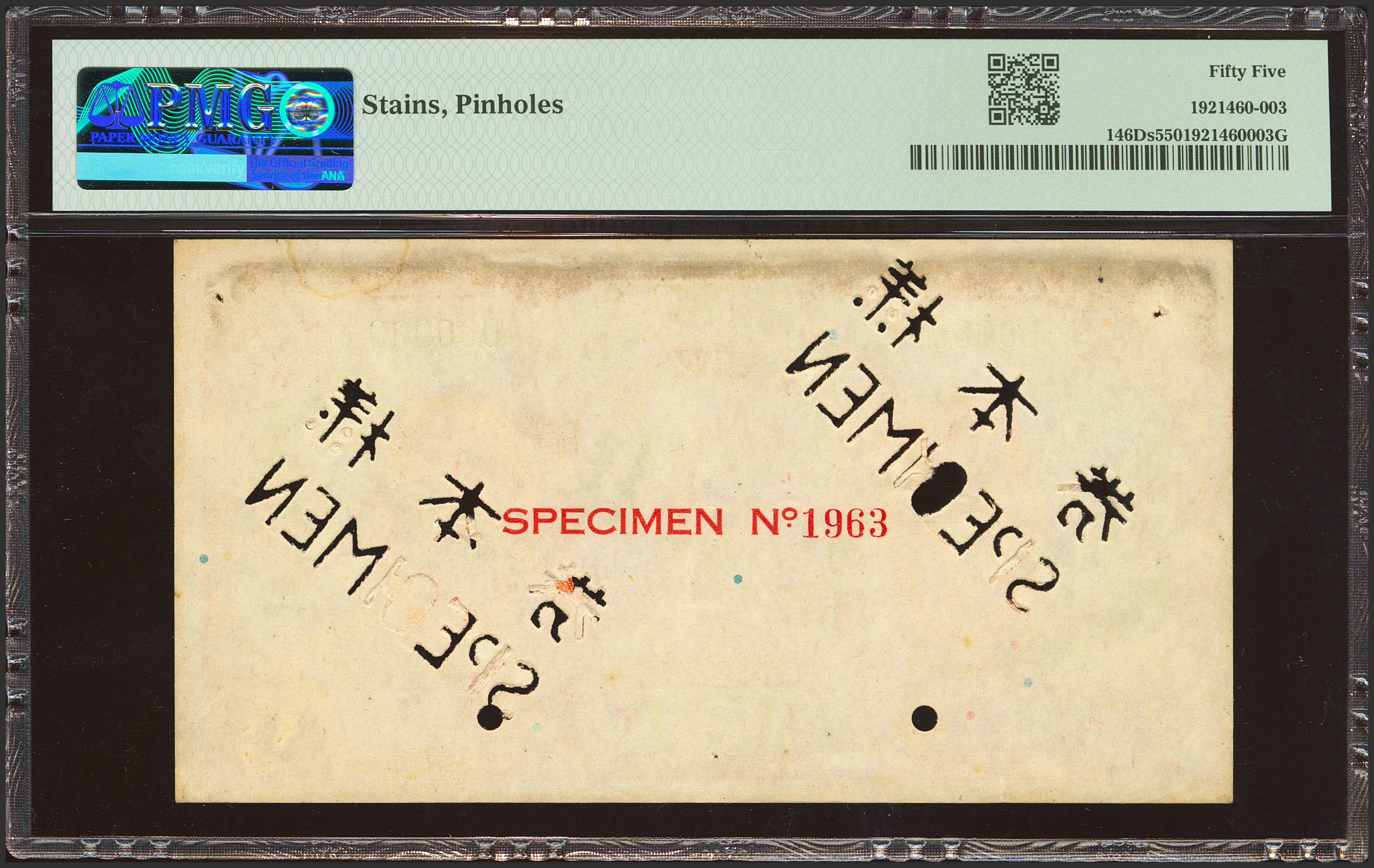 CHINA. 5 Yuan. 1 November 1927. Bank of Communication. Tientsin. Front Specimen. (Pick: 146Ds, SM: C126-214). PMG55 (stains, pinholes).