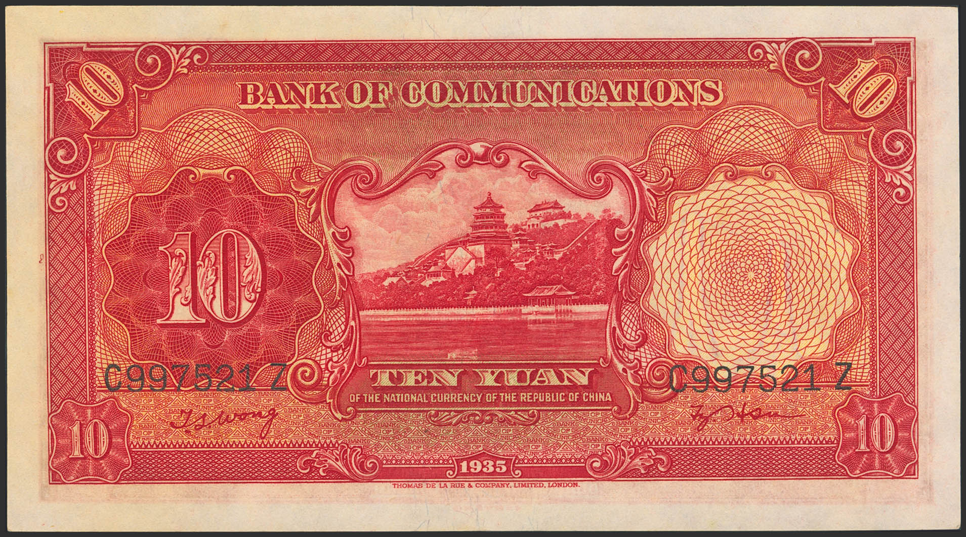 CHINA. 10 Yuan. 1935. Bank of Communication. (Pick: 155). Uncirculated.
