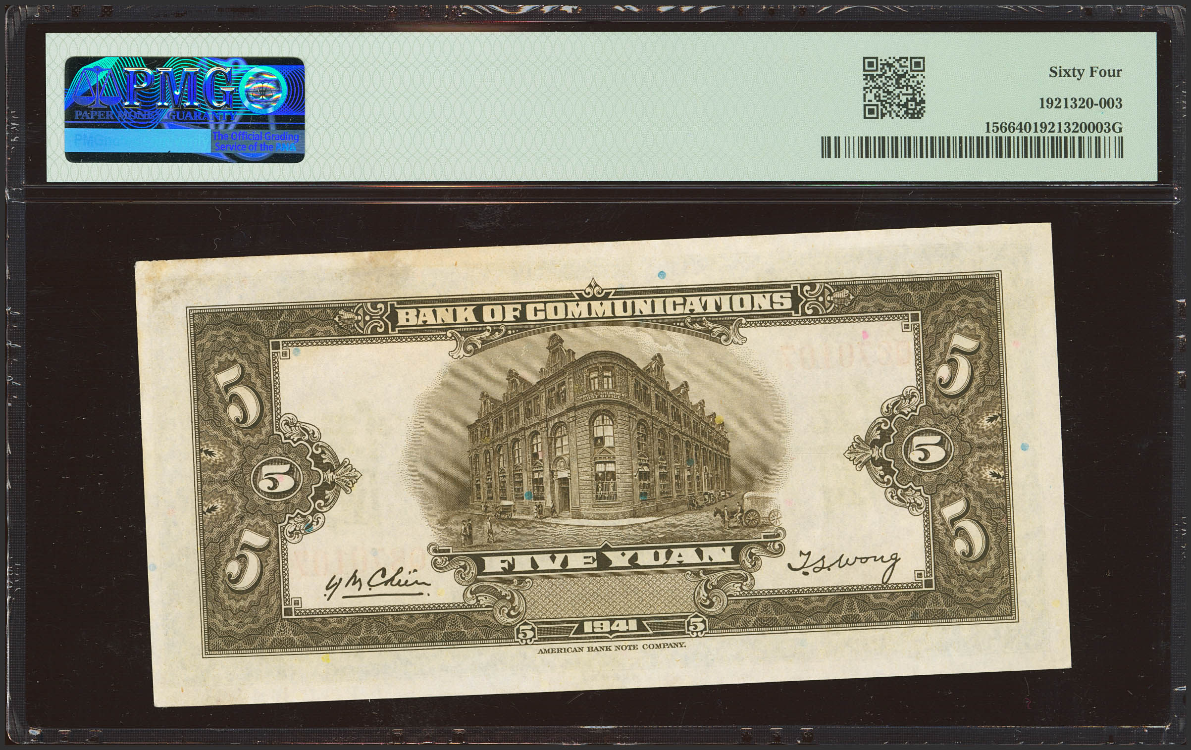 CHINA. 5 Yuan. 1941. Bank of Communication. (Pick: 156, SM: C126-252). PMG64.