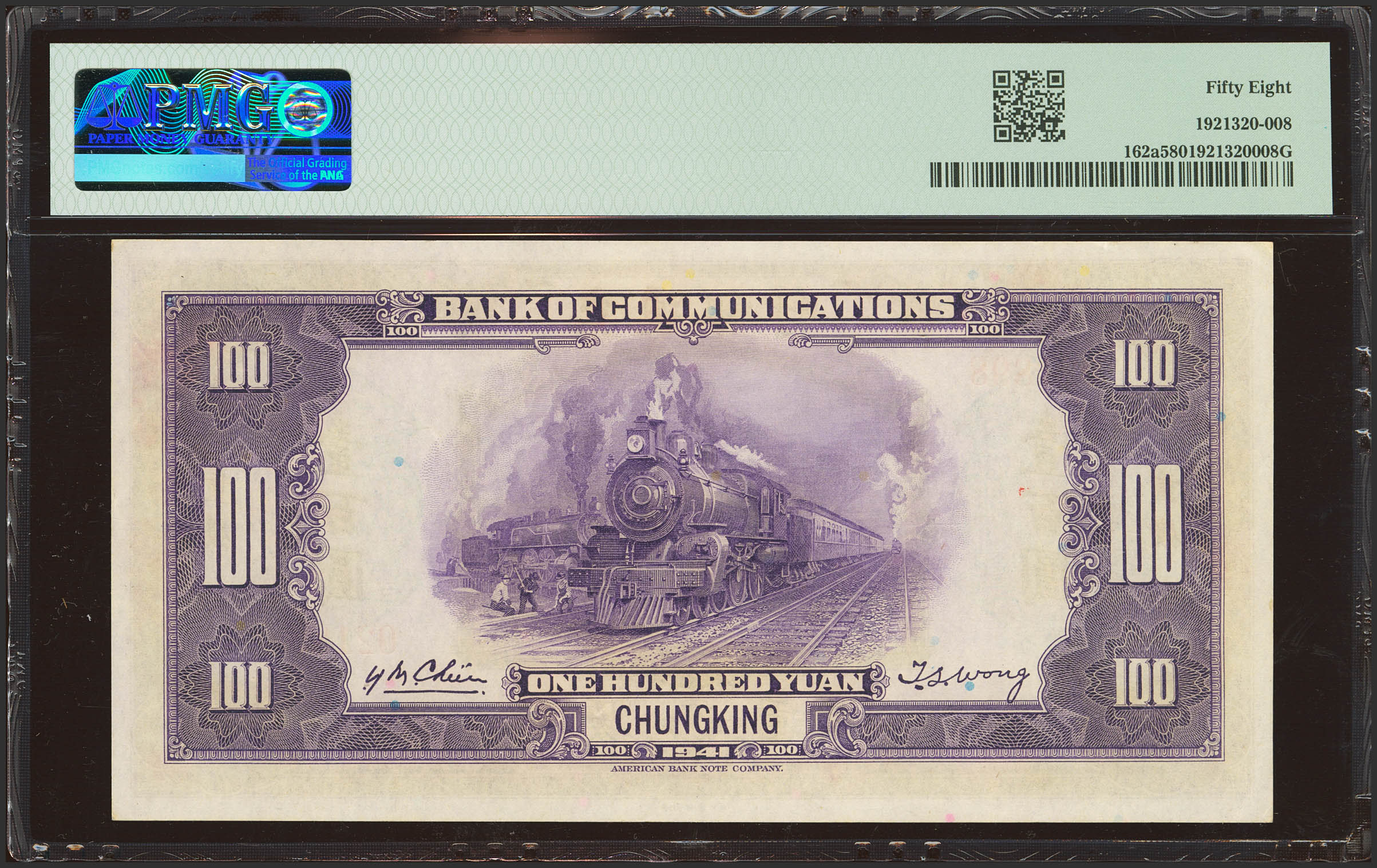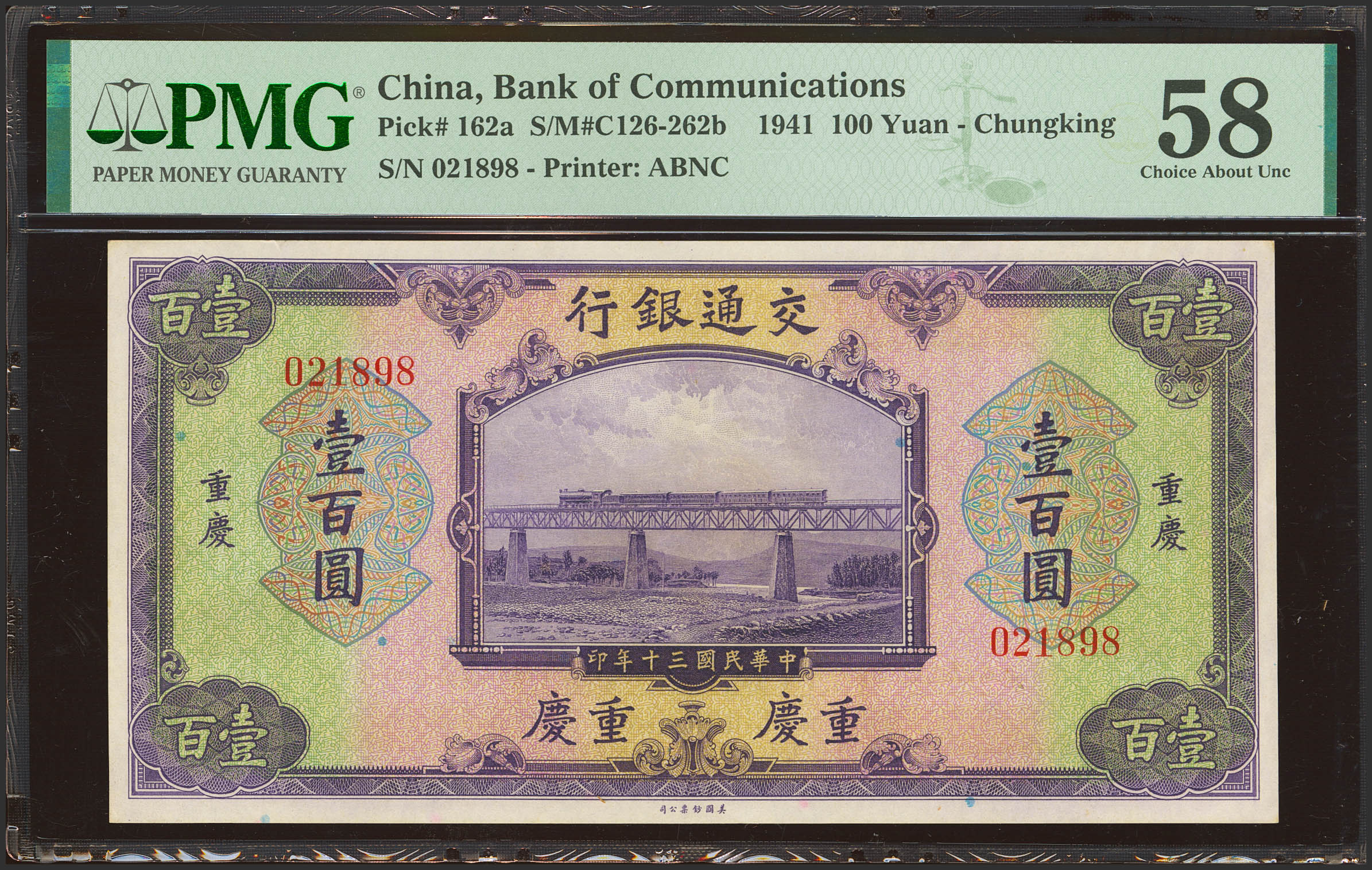 CHINA. 100 Yuan. 1941. Bank of Communication. Chungking. (Pick: 162a, SM: C126-262b). PMG58.