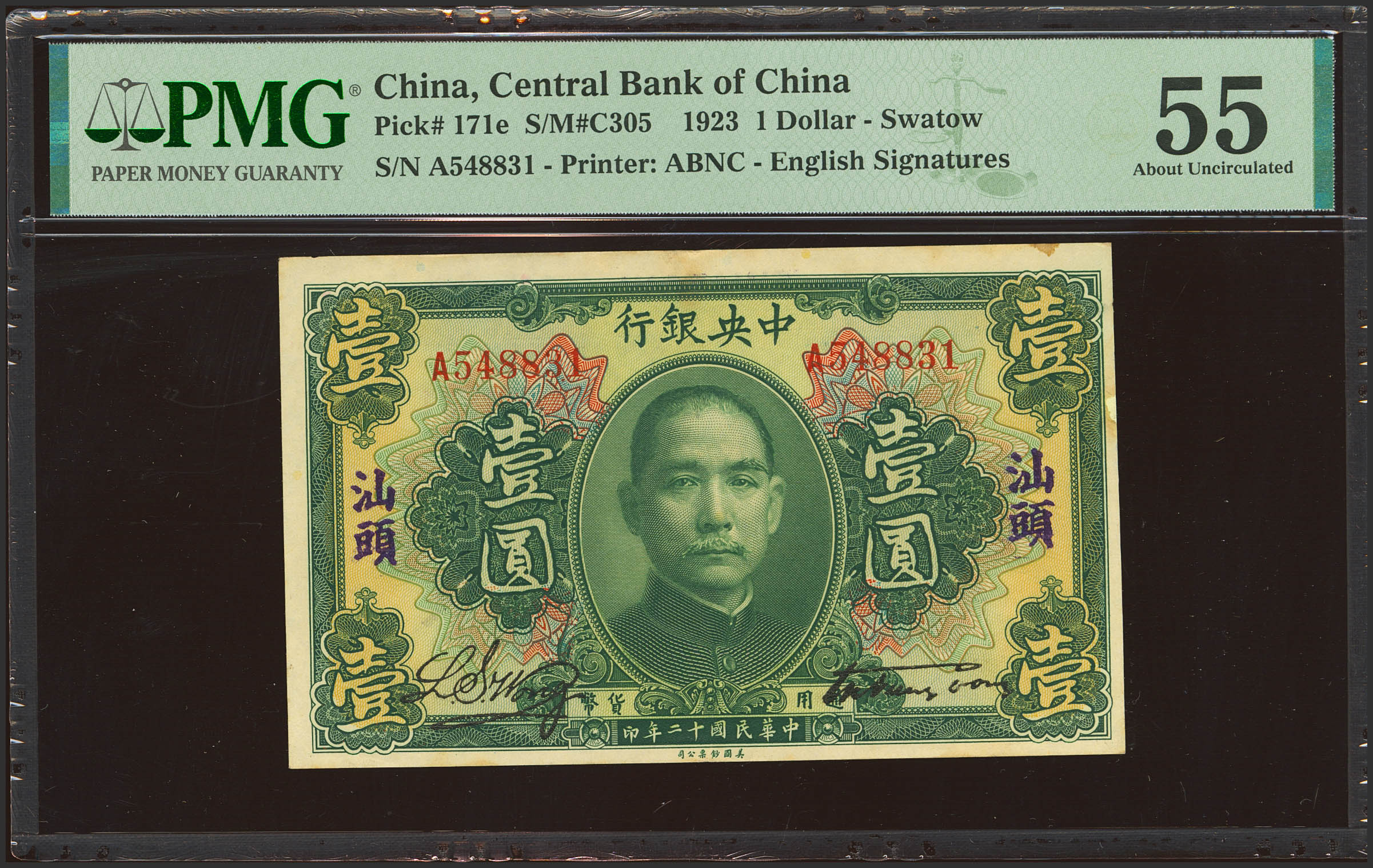CHINA. 1 Dollar. 1923. Central Bank of China. Swatow. (Pick: 171e, SM: C305). PMG55 (repaired).