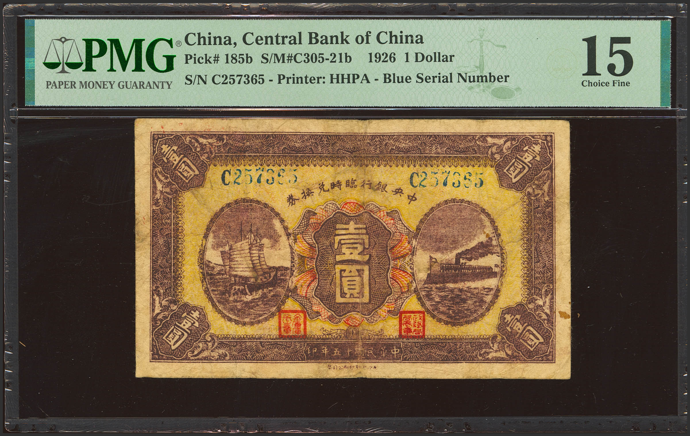 CHINA. 1 Yuan. 1926. Central Bank of China. (Pick: 185b, SM: C305-21b). PMG15 (ink stamp).