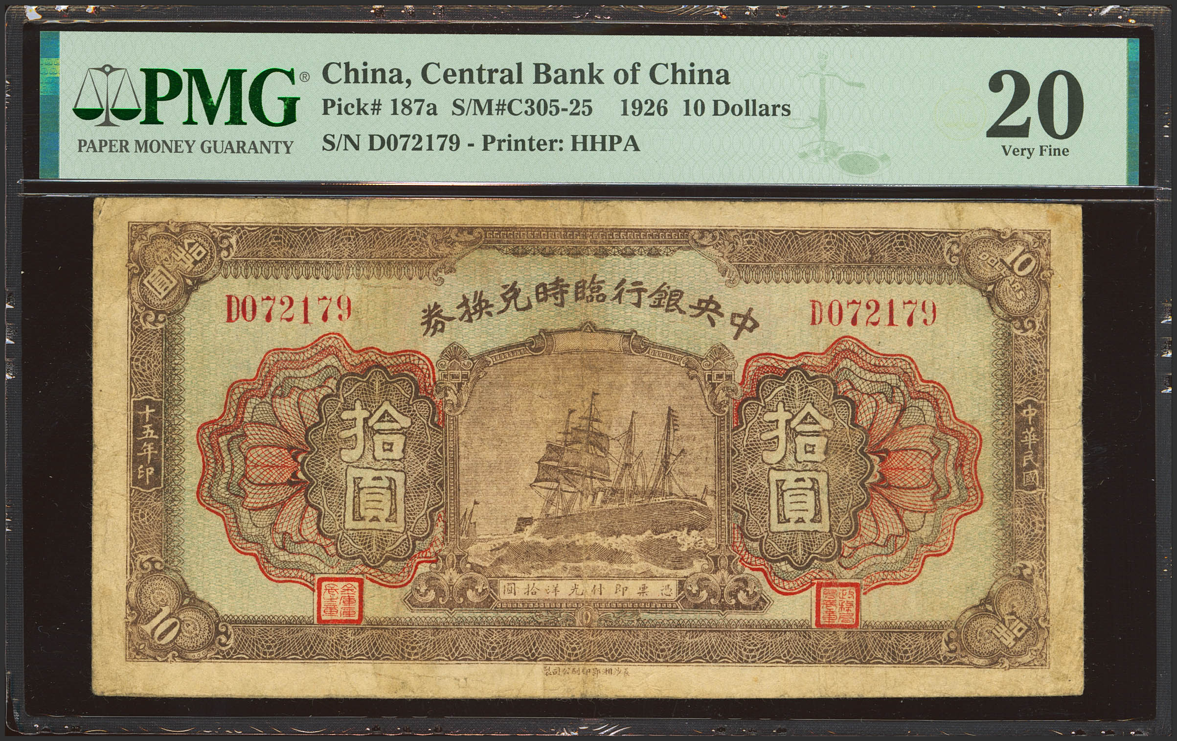 CHINA. 10 Dollars. 1926. Central Bank of China. (Pick: 187a, SM: C305-25). PMG20.
