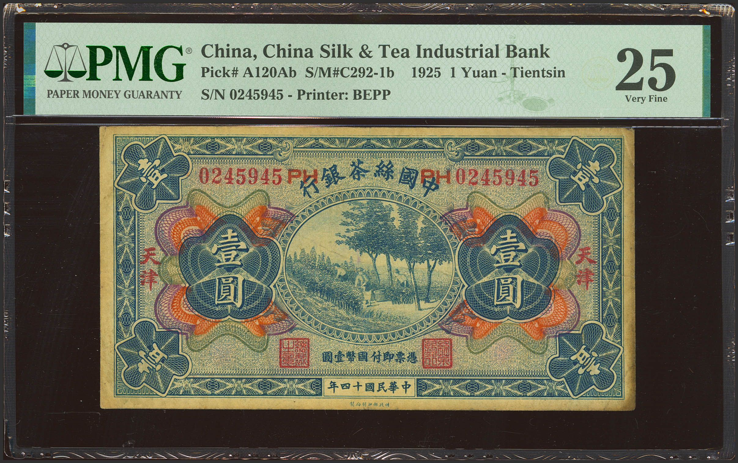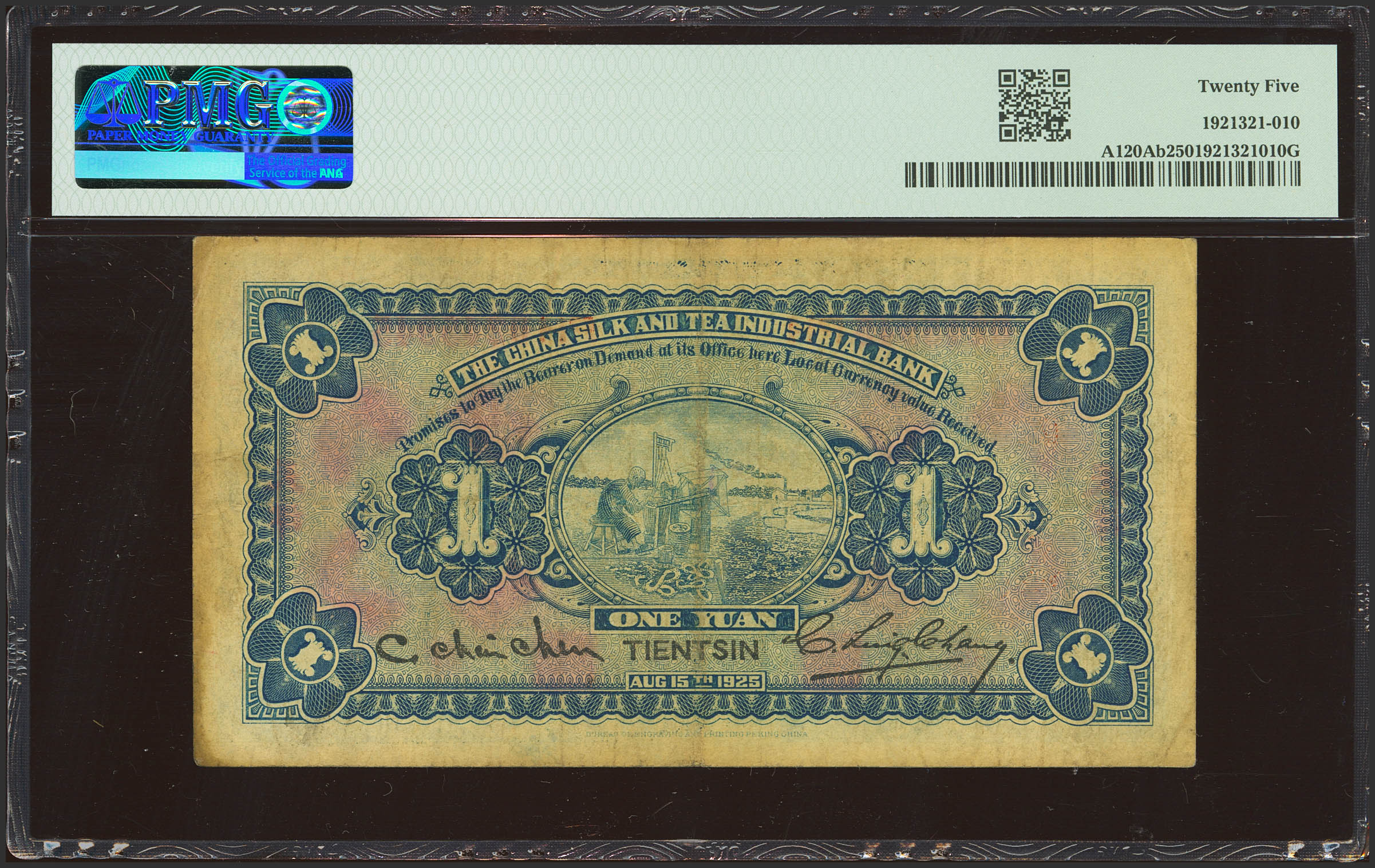 CHINA. 1 Yuan. 15 August 1925. China Silk and Tea Industrial Bank. Tientsin. (Pick: A120Ab, SM: C292-1b). PMG25.