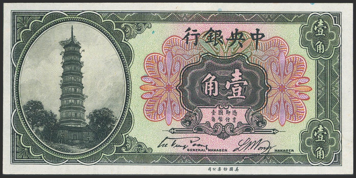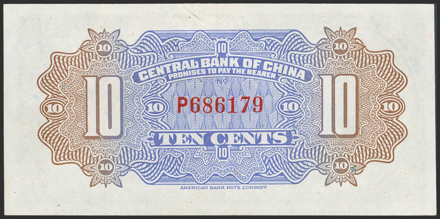 CHINA. 10 Cents. (1924ca). Central Bank of China. (Pick: 193a). Less than Uncirculated.