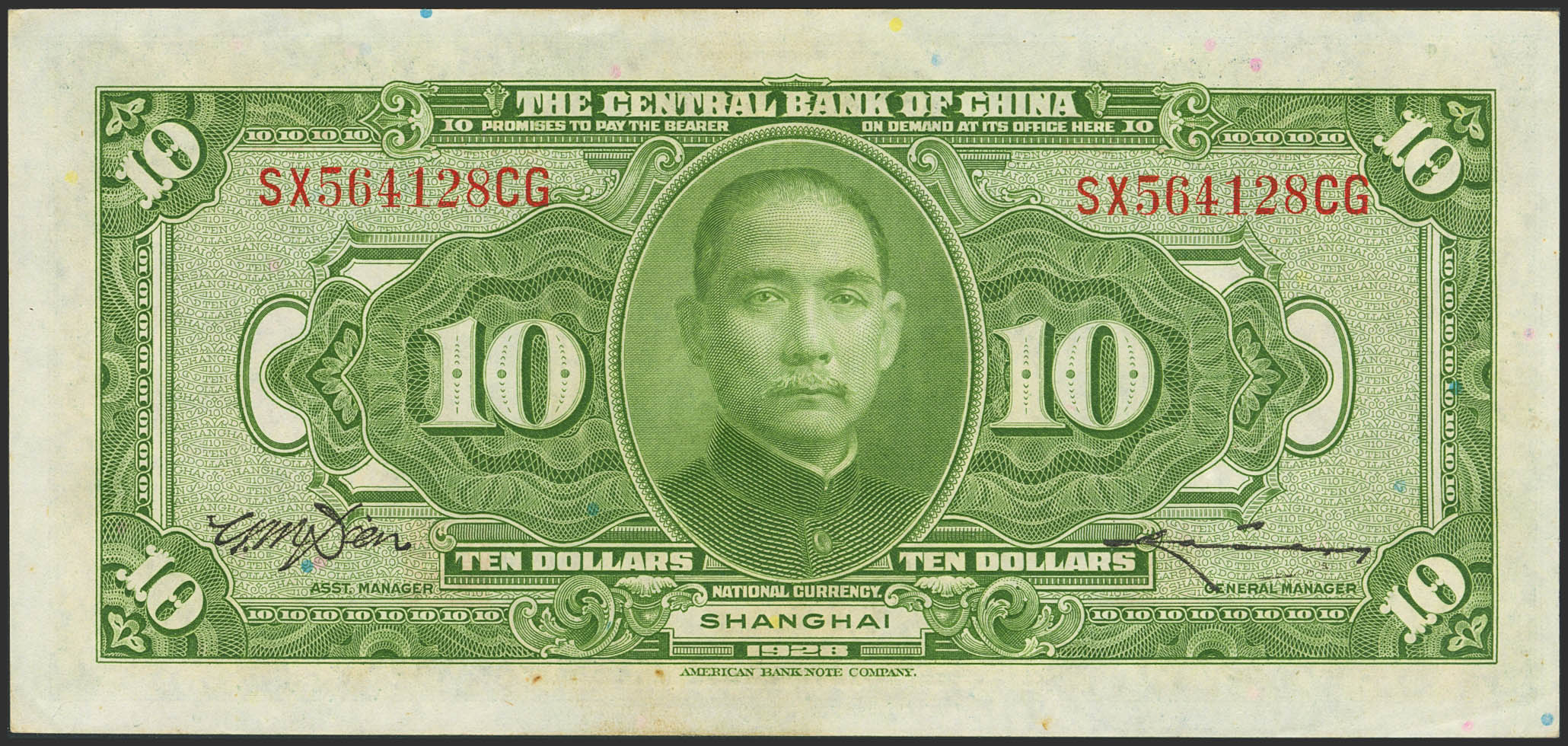CHINA. 10 Dollars. 1928. Central Bank of China. (Pick: 197f). Almost Uncirculated.