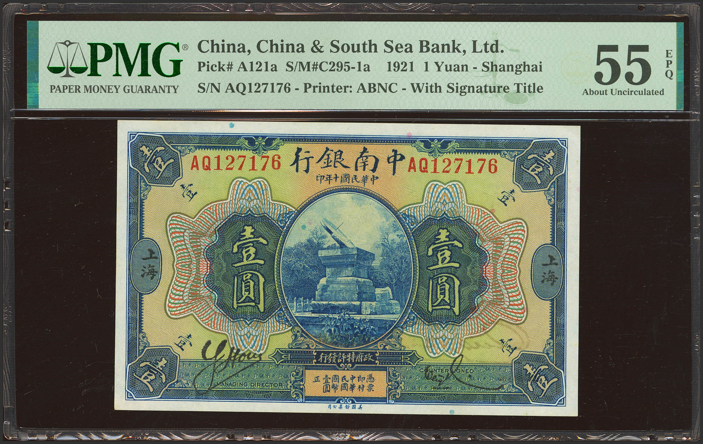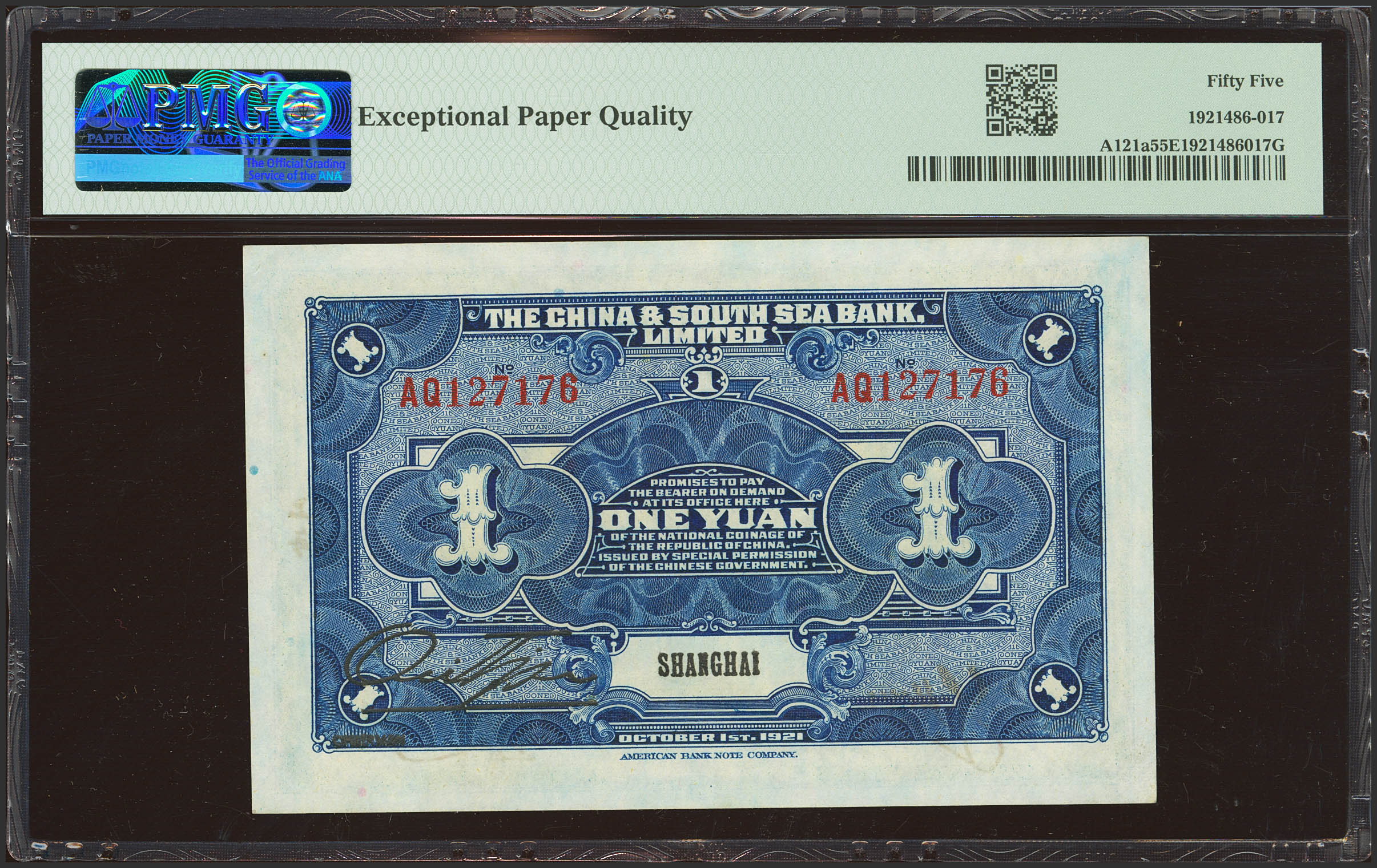 CHINA. 1 Yuan. 1 October 1921. China and South Sea Bank. Shanghai. (Pick: A121a, SM: C295-1a). PMG55EPQ.