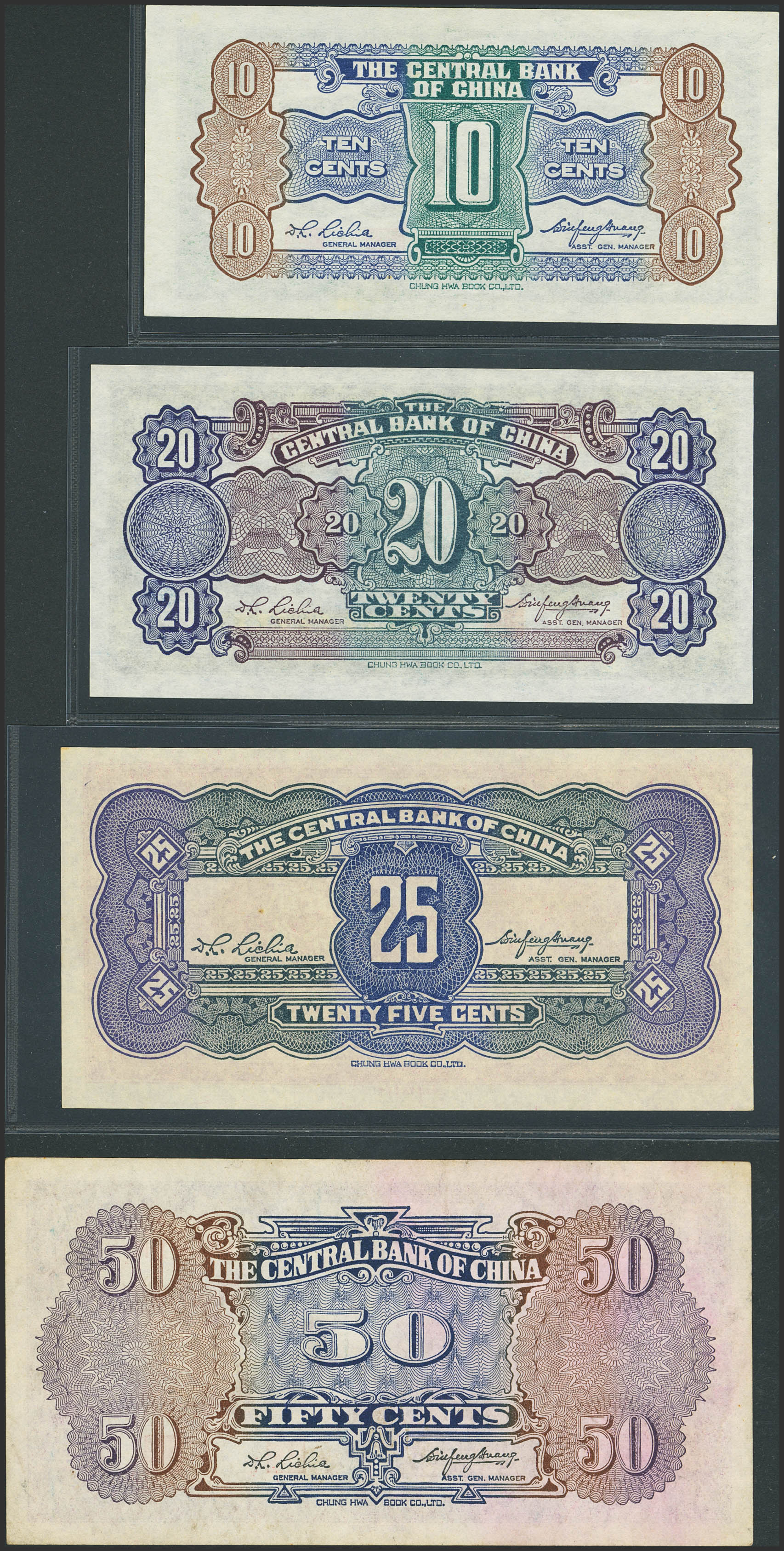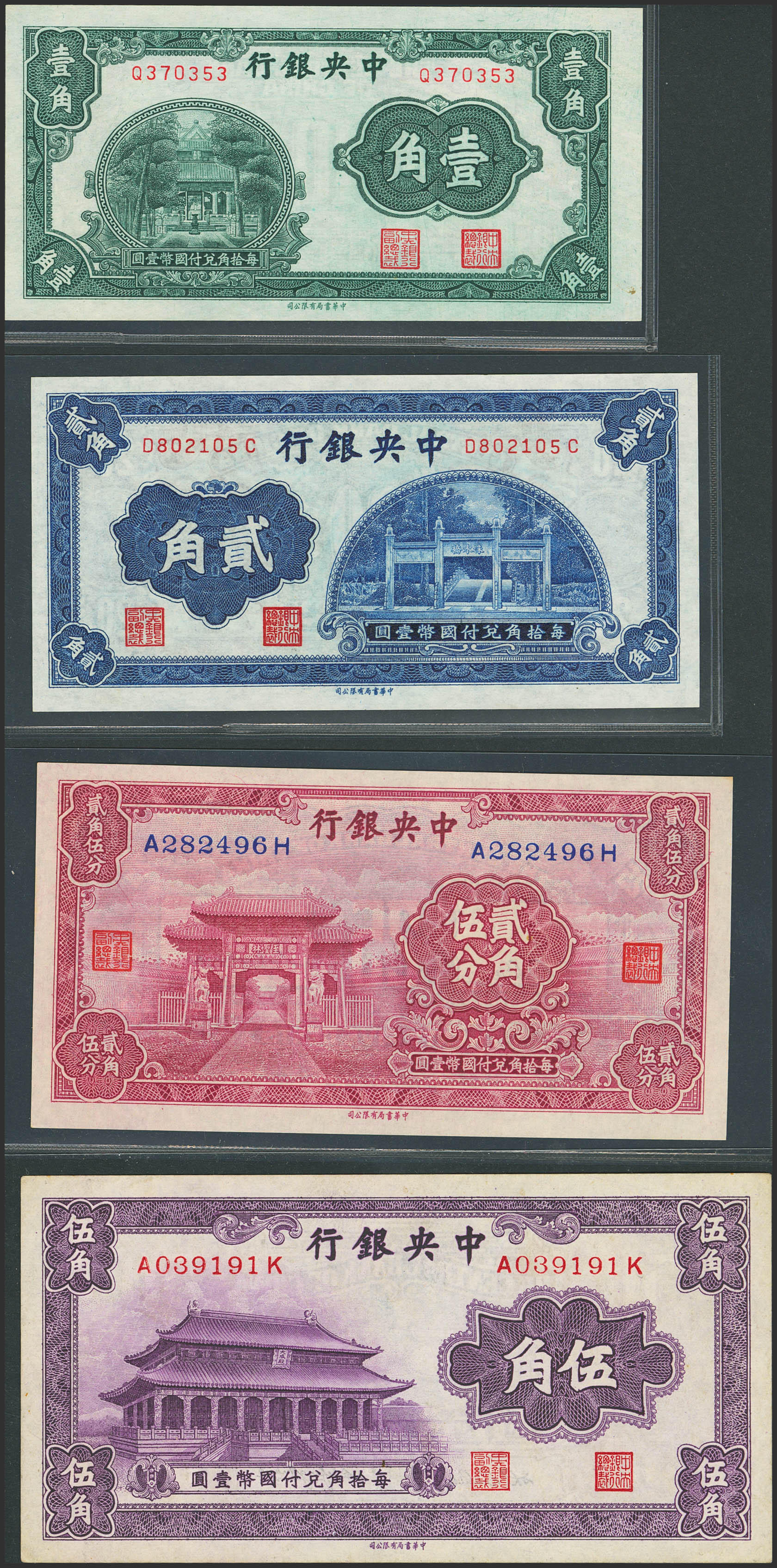 CHINA. Lot of 4 notes. (1931ca). Central Bank of China. (Pick: 202(1), 203(1), 204(1), 205(1)). About Uncirculated (2) to Uncirculated (2).