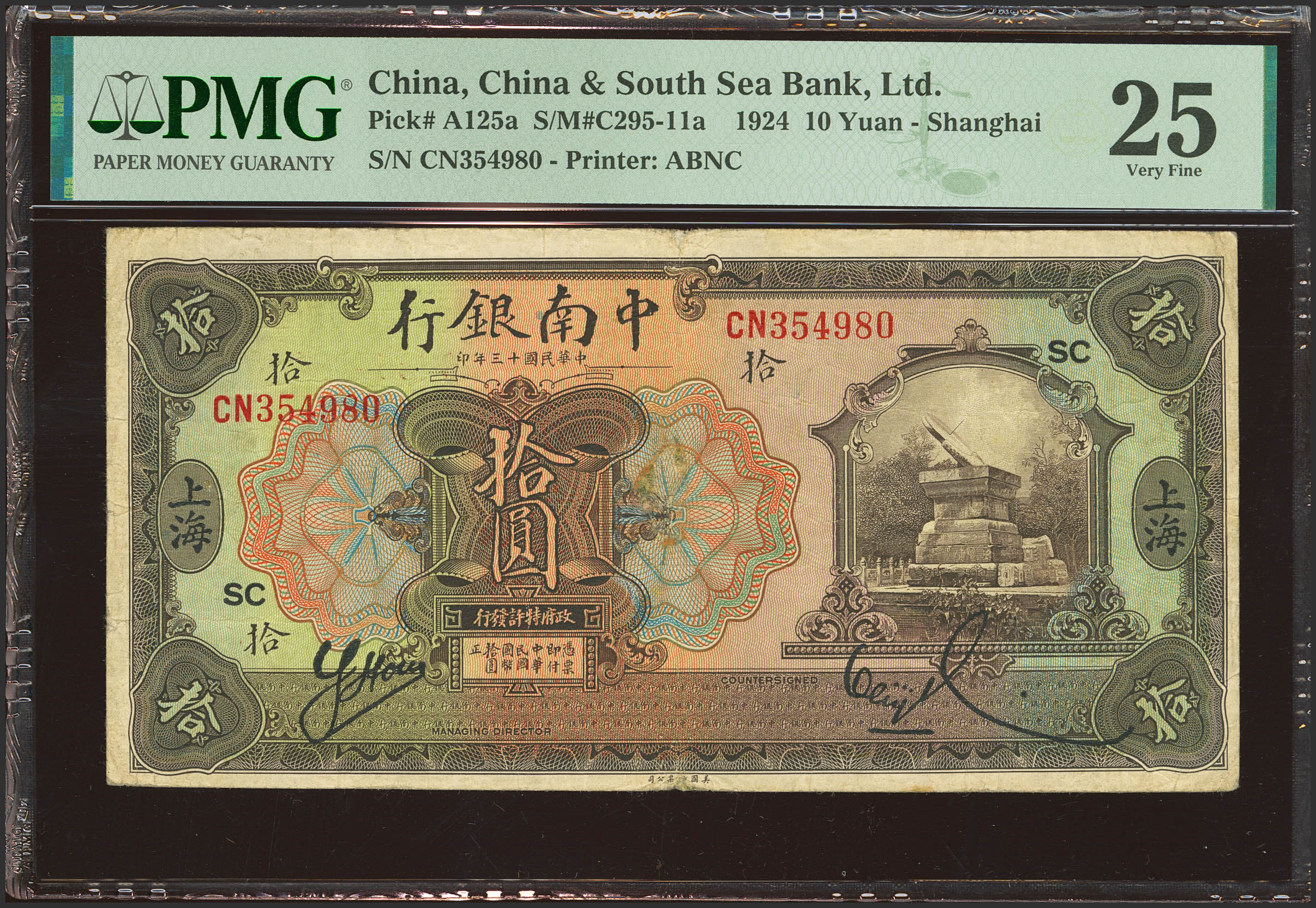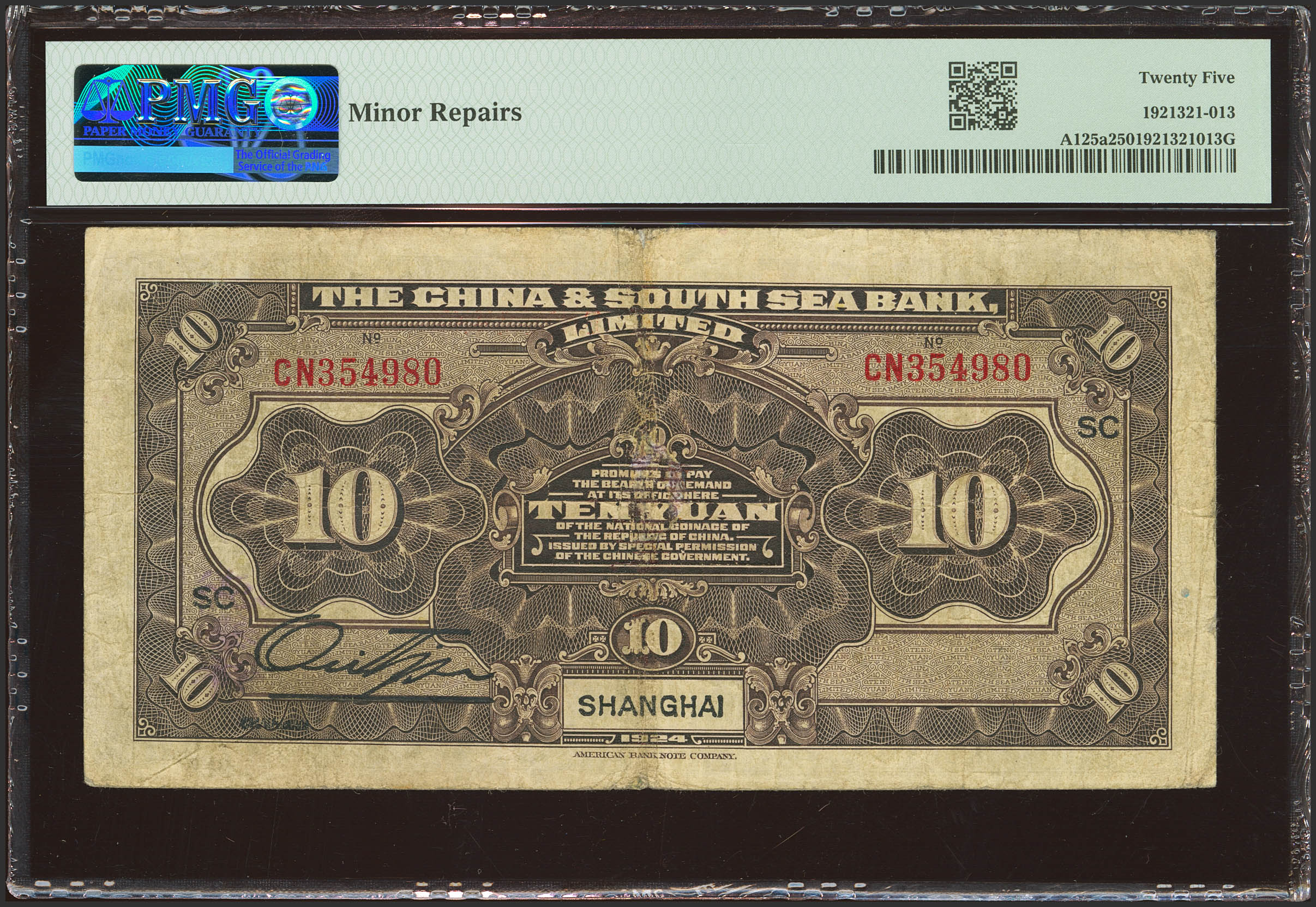 CHINA. 10 Yuan. 1924. China and South Sea Bank. Shanghai. (Pick: A125a). PMG25 (minor repairs).