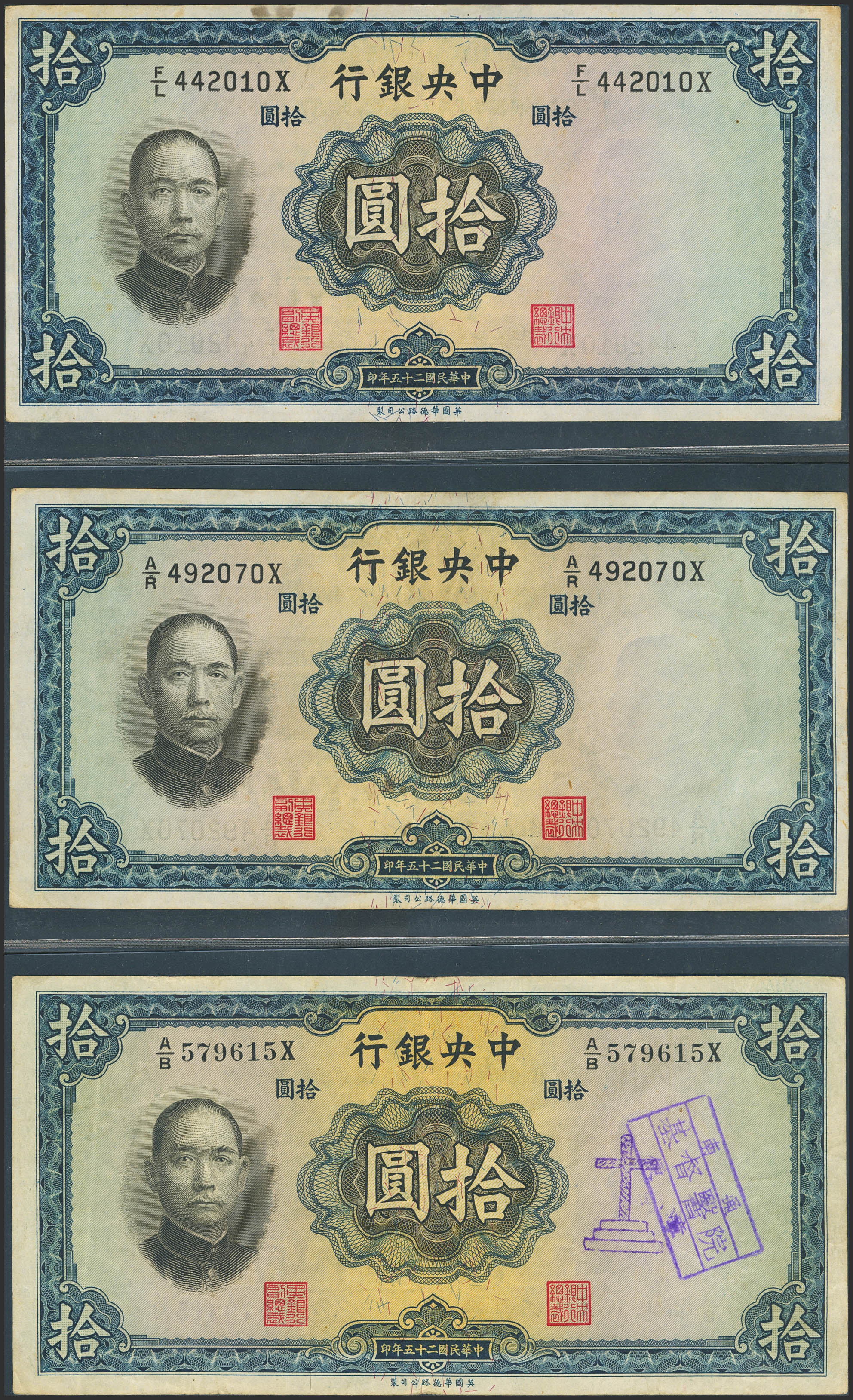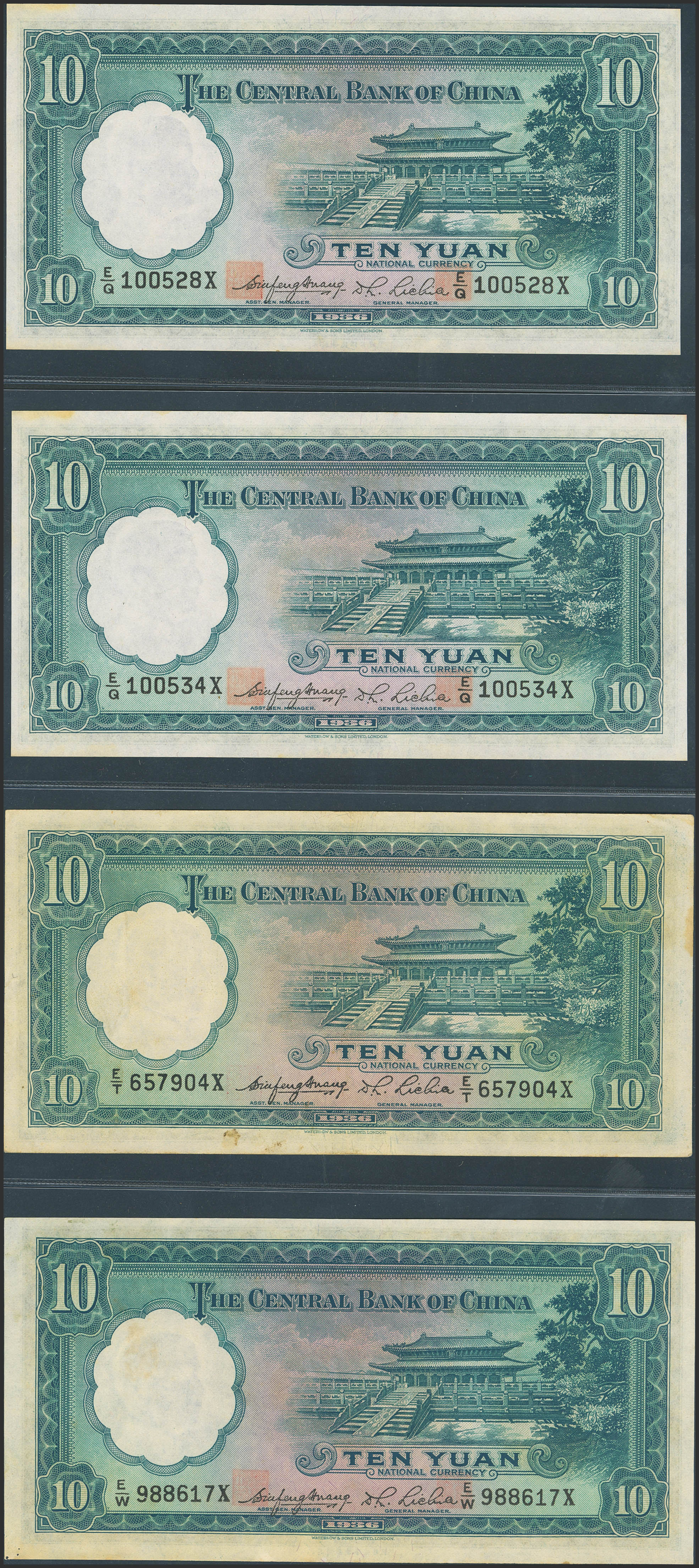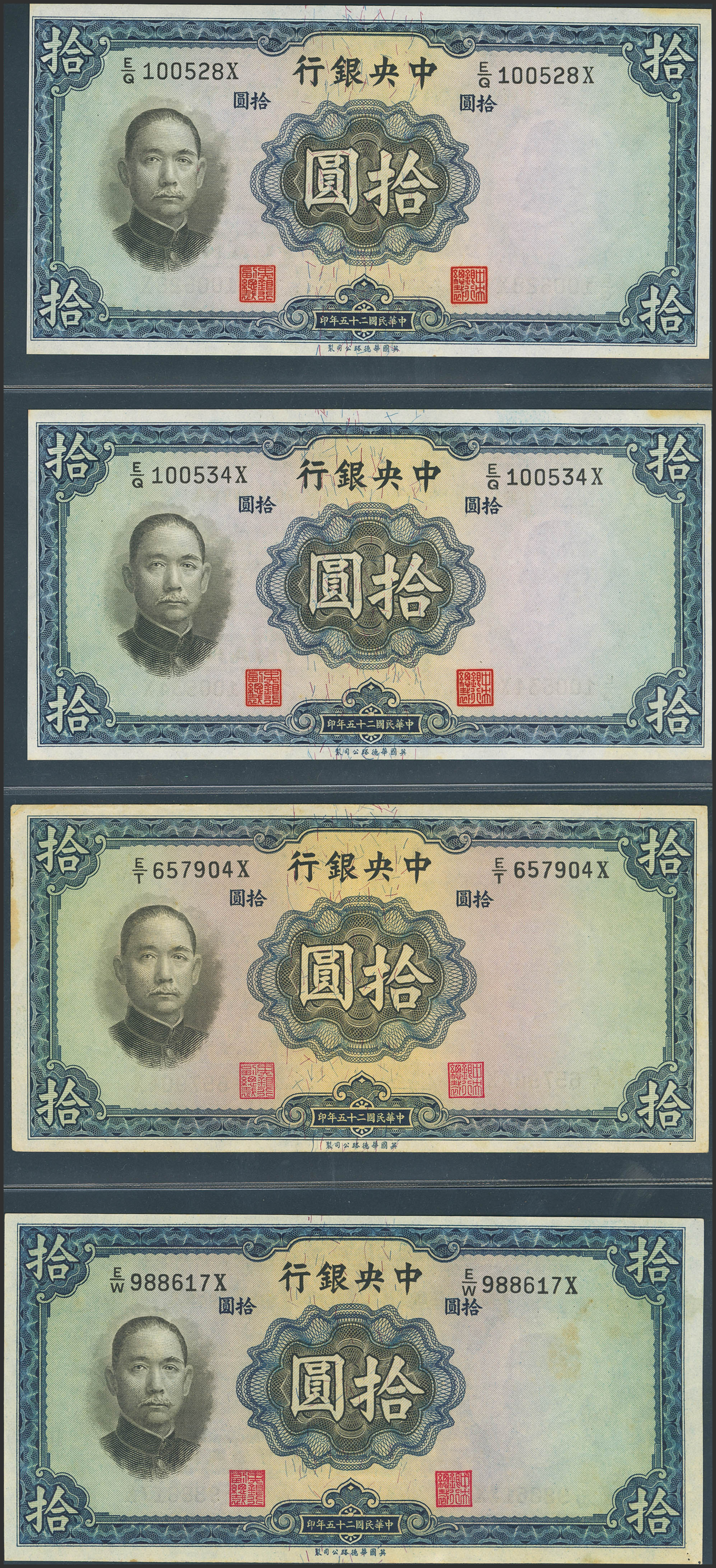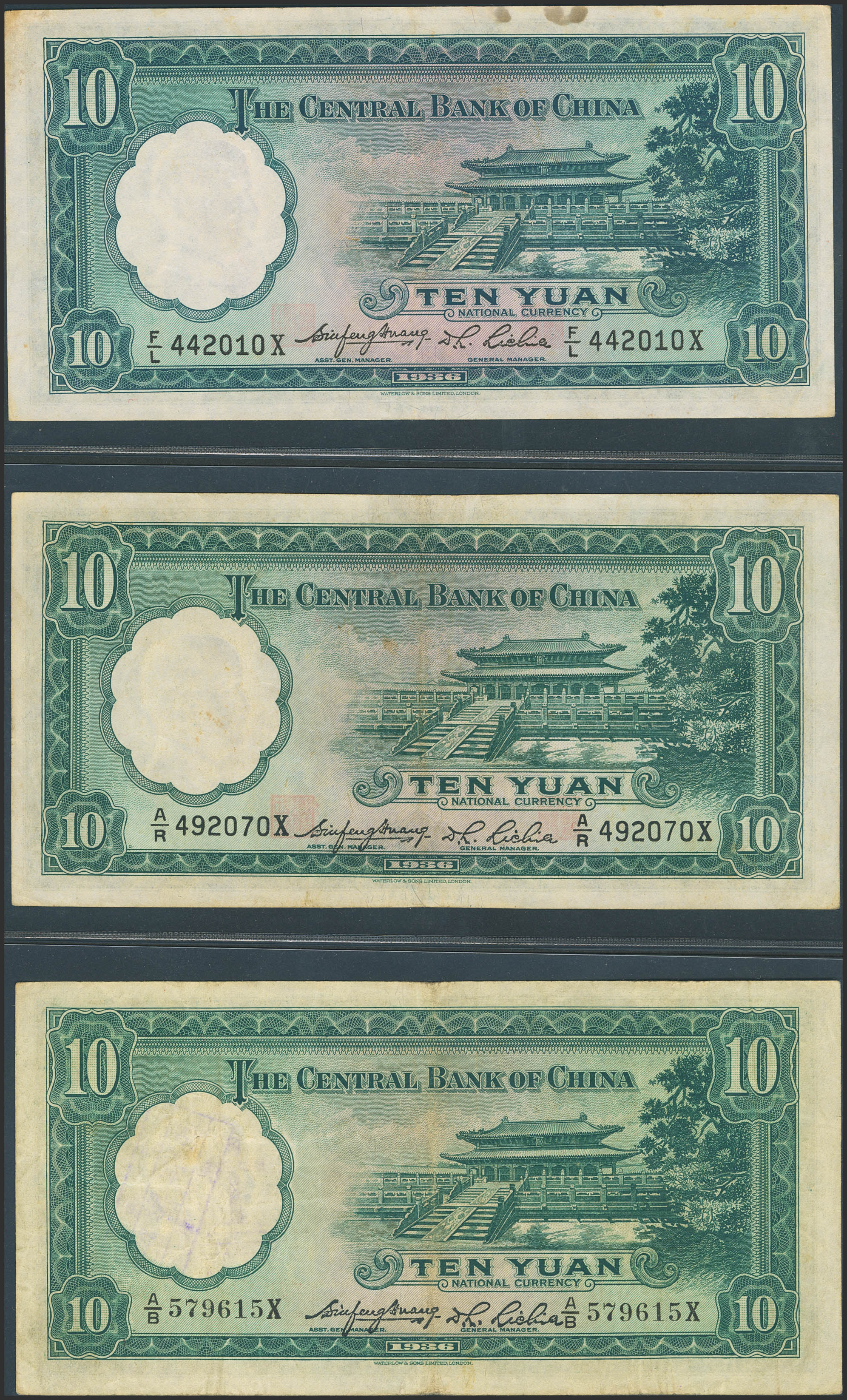 CHINA. Lot of 7 notes of 10 Yuan. 1936. Central Bank of China. (Pick: 218a). Extremely Fine to Less than Uncirculated.