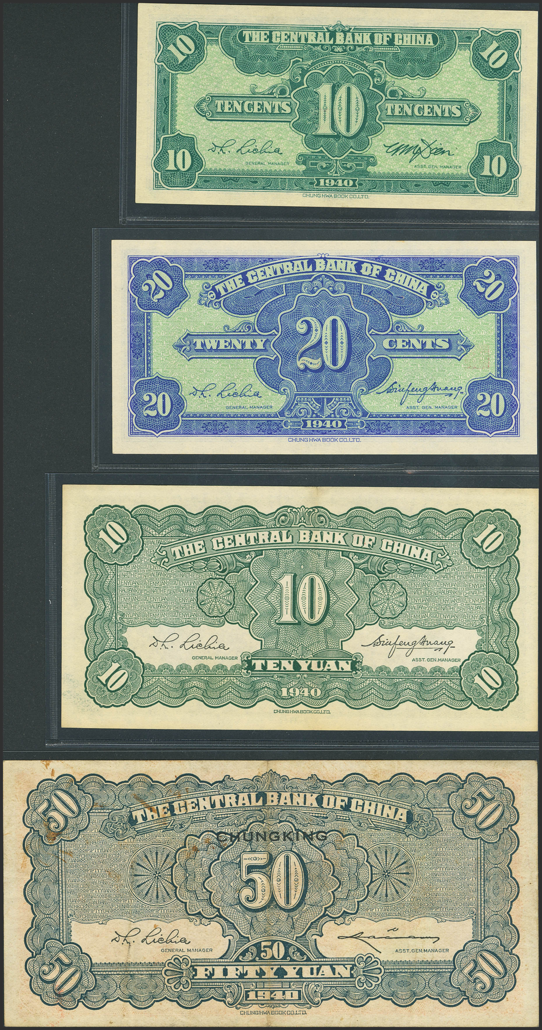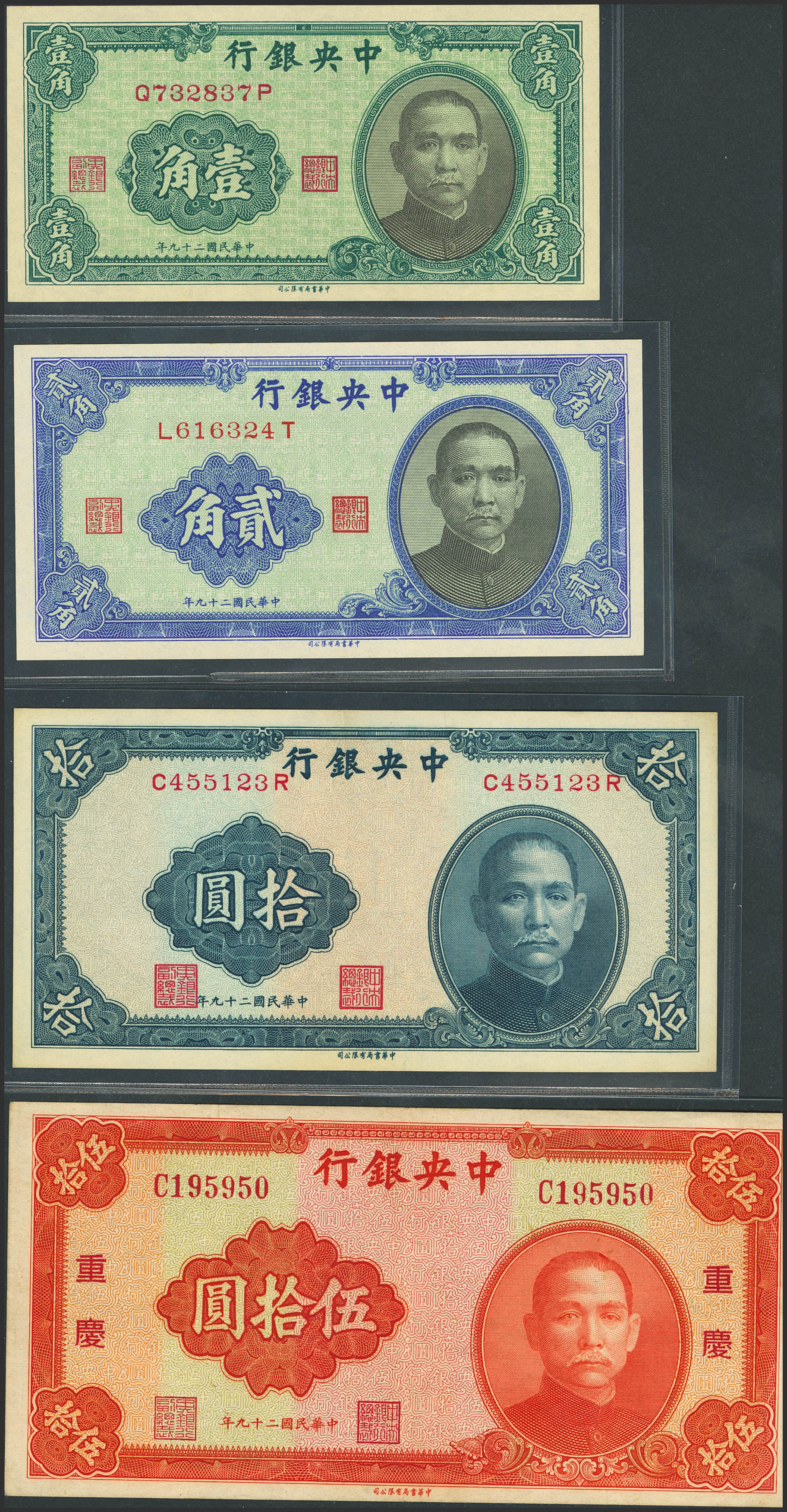 CHINA. Lot of 4 notes. 1940. Central Bank of China. (Pick: 226, 227, 228, 229b). Uncirculated (3) to More than Very Fine (1).