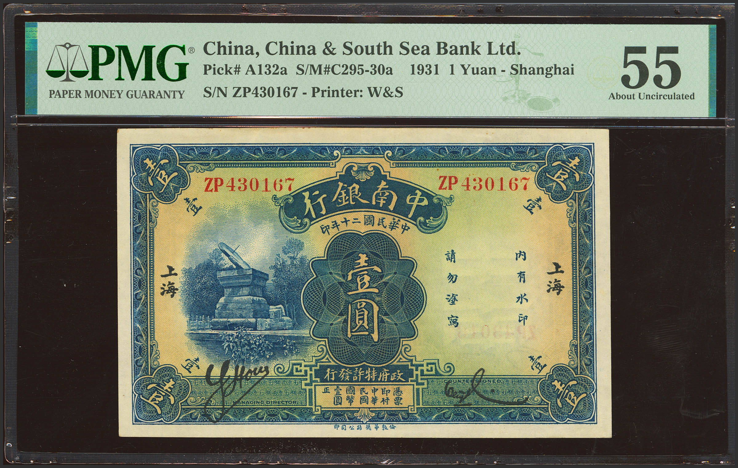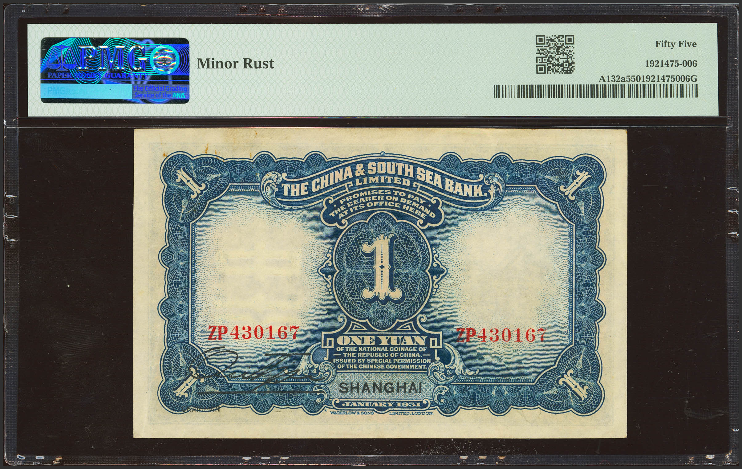 CHINA. 1 Yuan. January 1931. China and South Sea Bank. Shanghai. (Pick: A132a, SM: C295-30a). PMG55 (minor rust).
