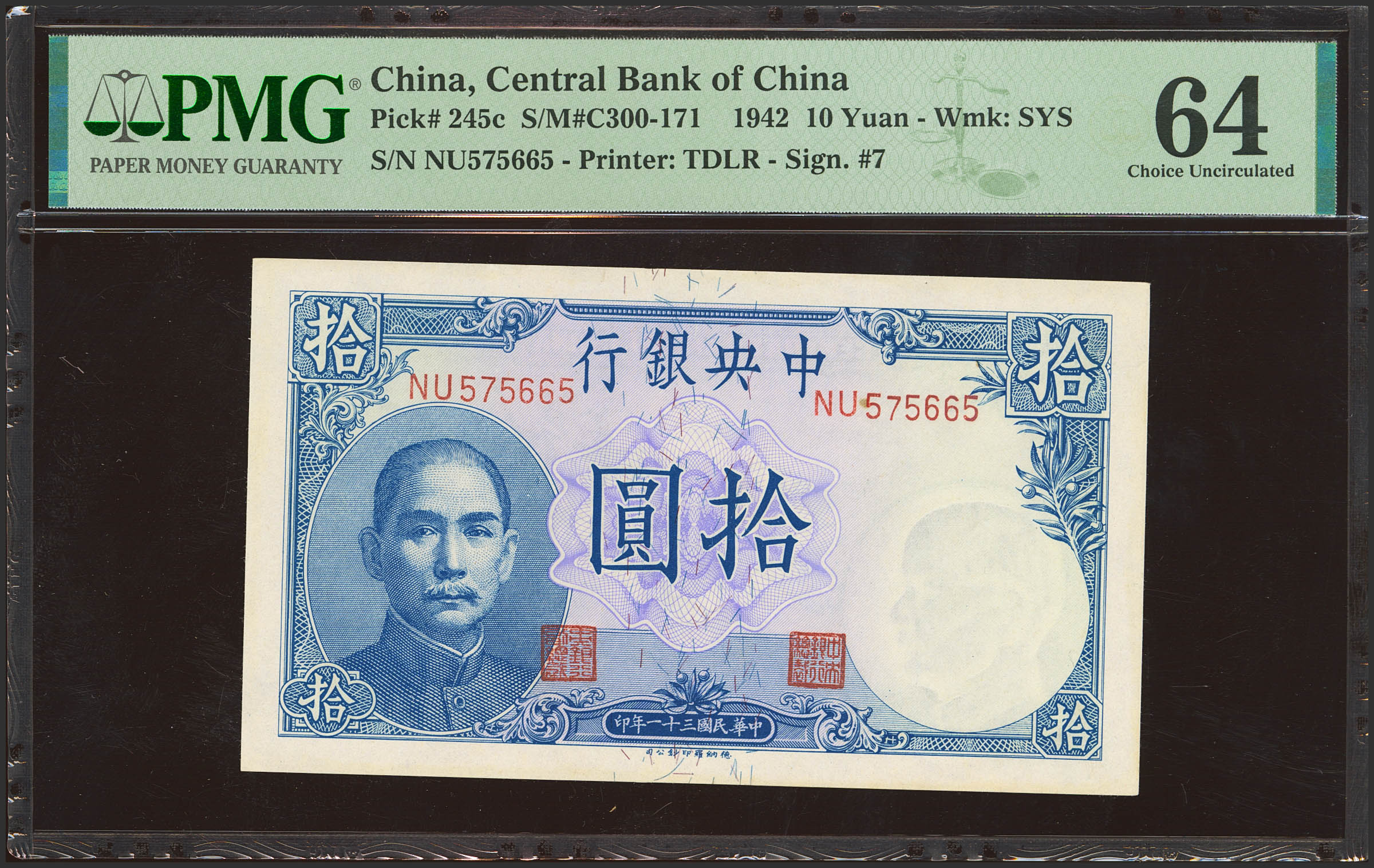 CHINA. 10 Yuan. 1942. Central Bank of China. (Pick: 245c, SM: C300-171). PMG64.