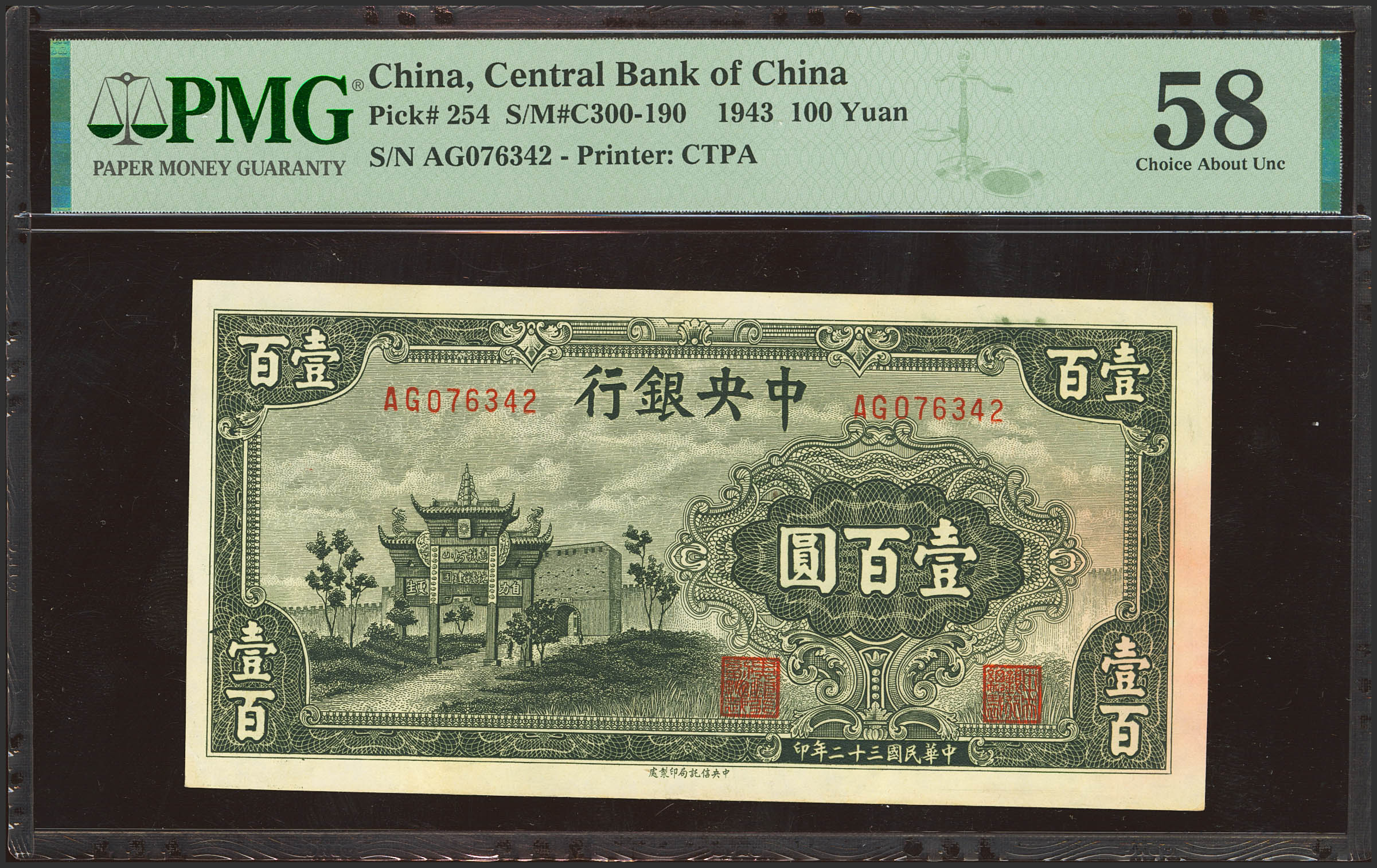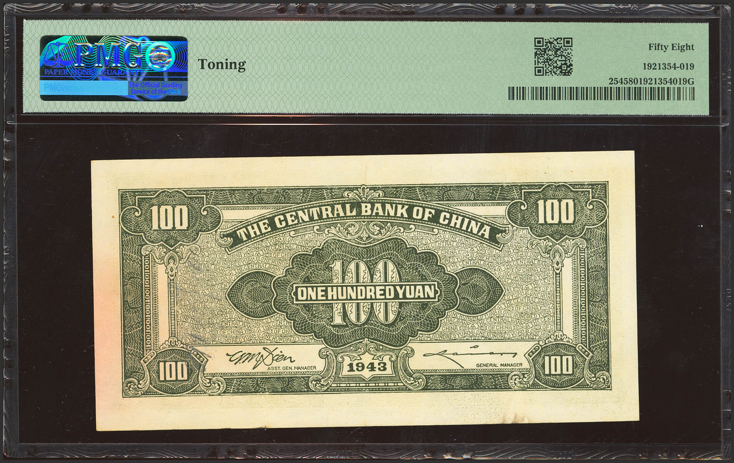 CHINA. 100 Yuan. 1943. Central Bank of China. (Pick: 254, SM: C300-190). PMG58 (toning).