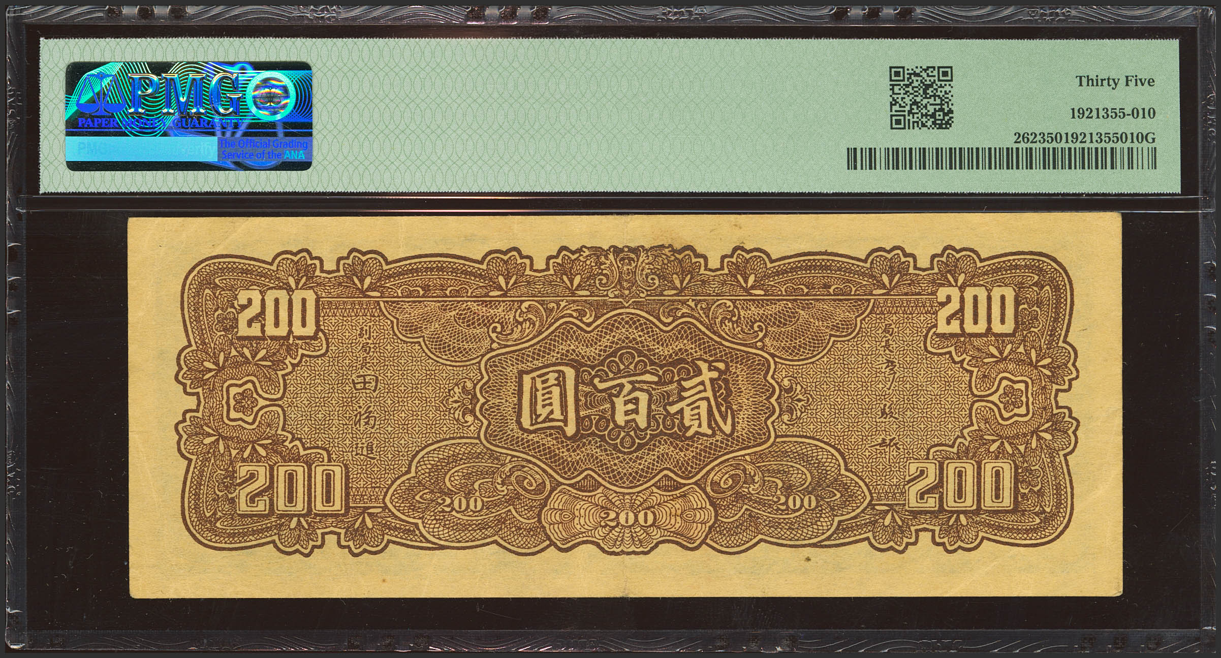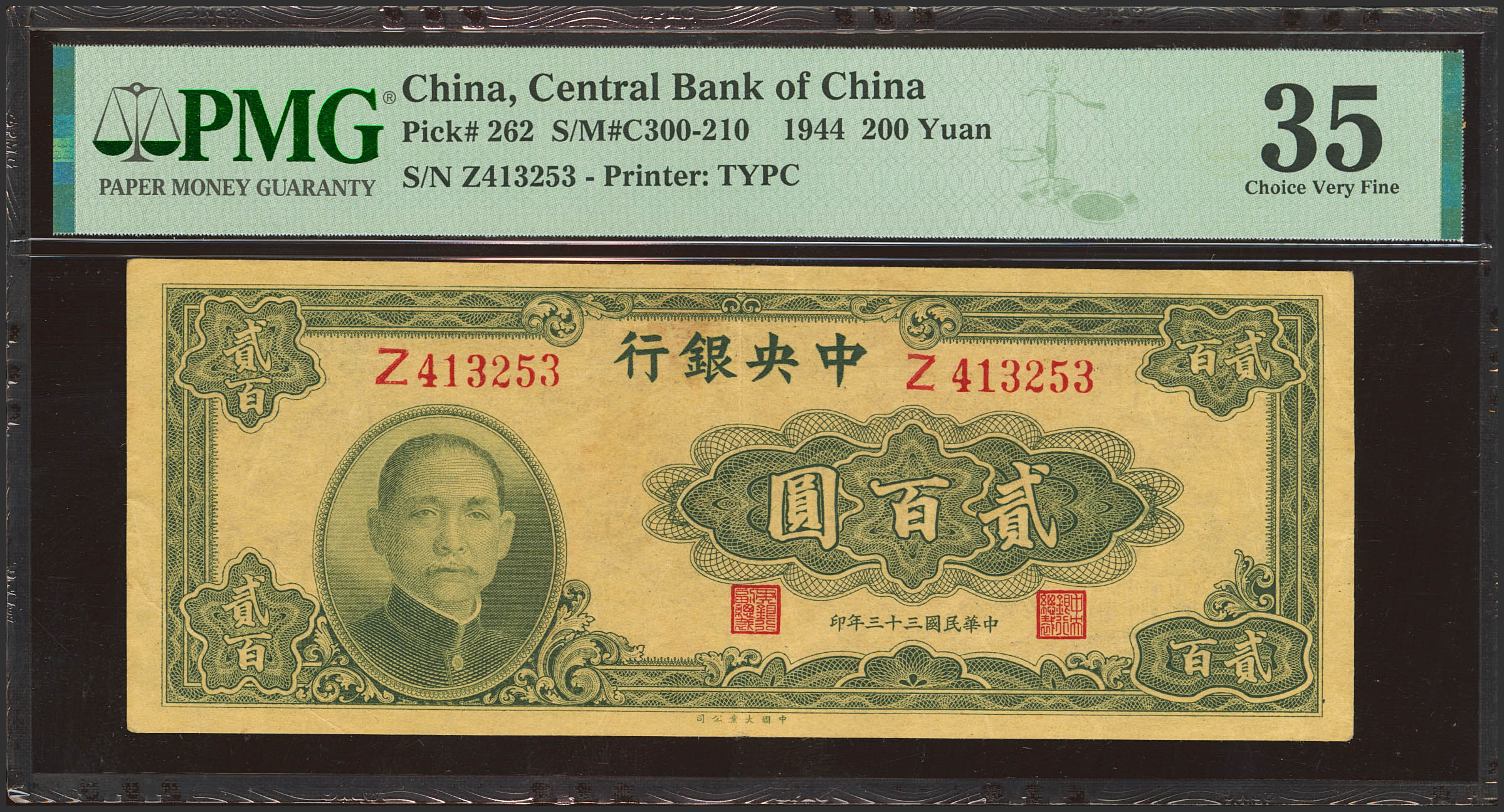 CHINA. 200 Yuan. 1944. Central Bank of China. (Pick: 262, SM: 300-210). PMG35.