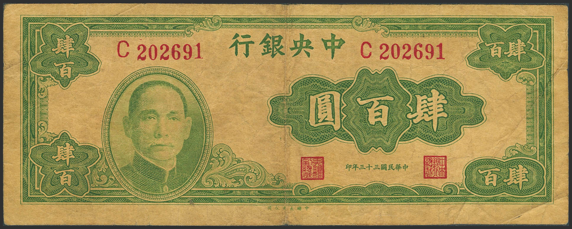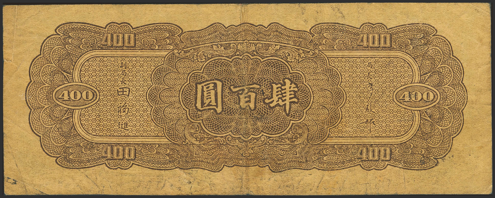 CHINA. 400 Yuan. 1944. Central Bank of China. (Pick: 263). More than Fine.