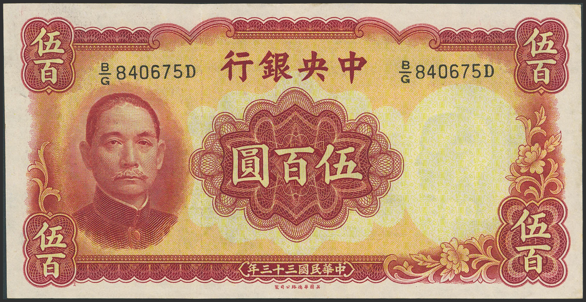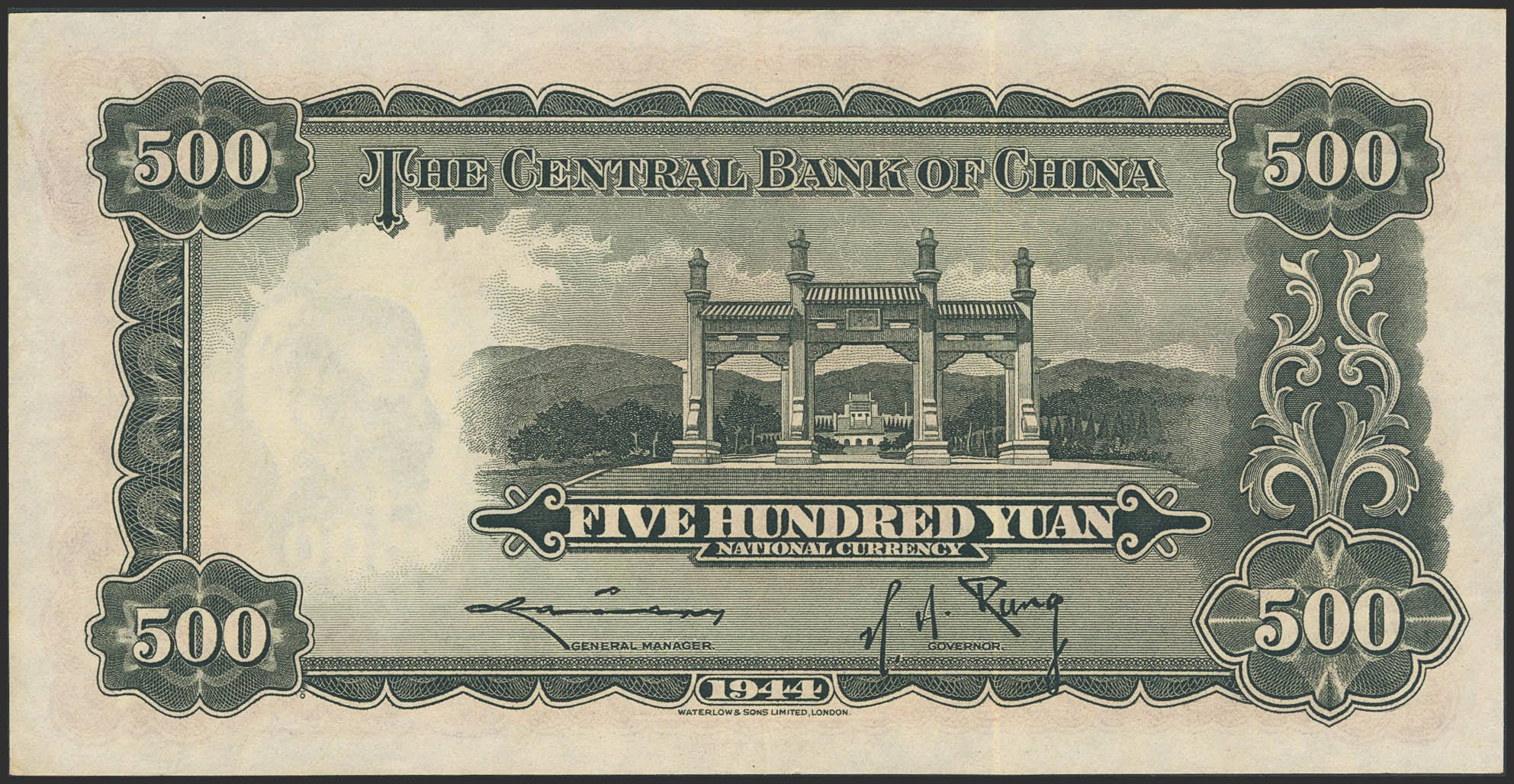 CHINA. 500 Yuan. 1944. Central Bank of China. (Pick: 265). Almost Uncirculated.