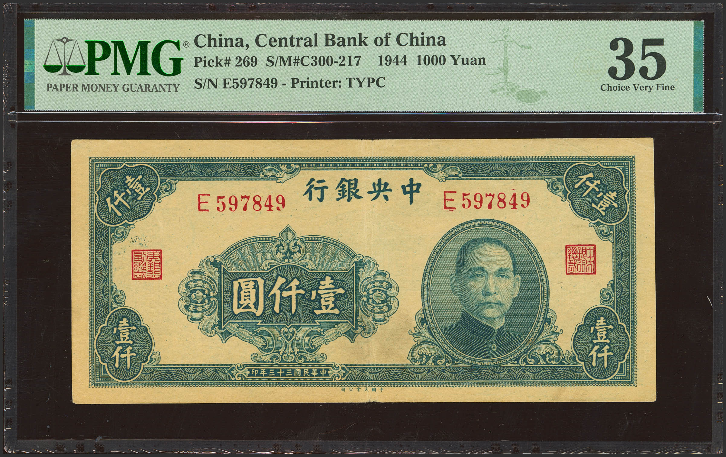 CHINA. 1000 Yuan. 1944. Central Bank of China. (Pick: 269, SM: C300-217). PMG35.