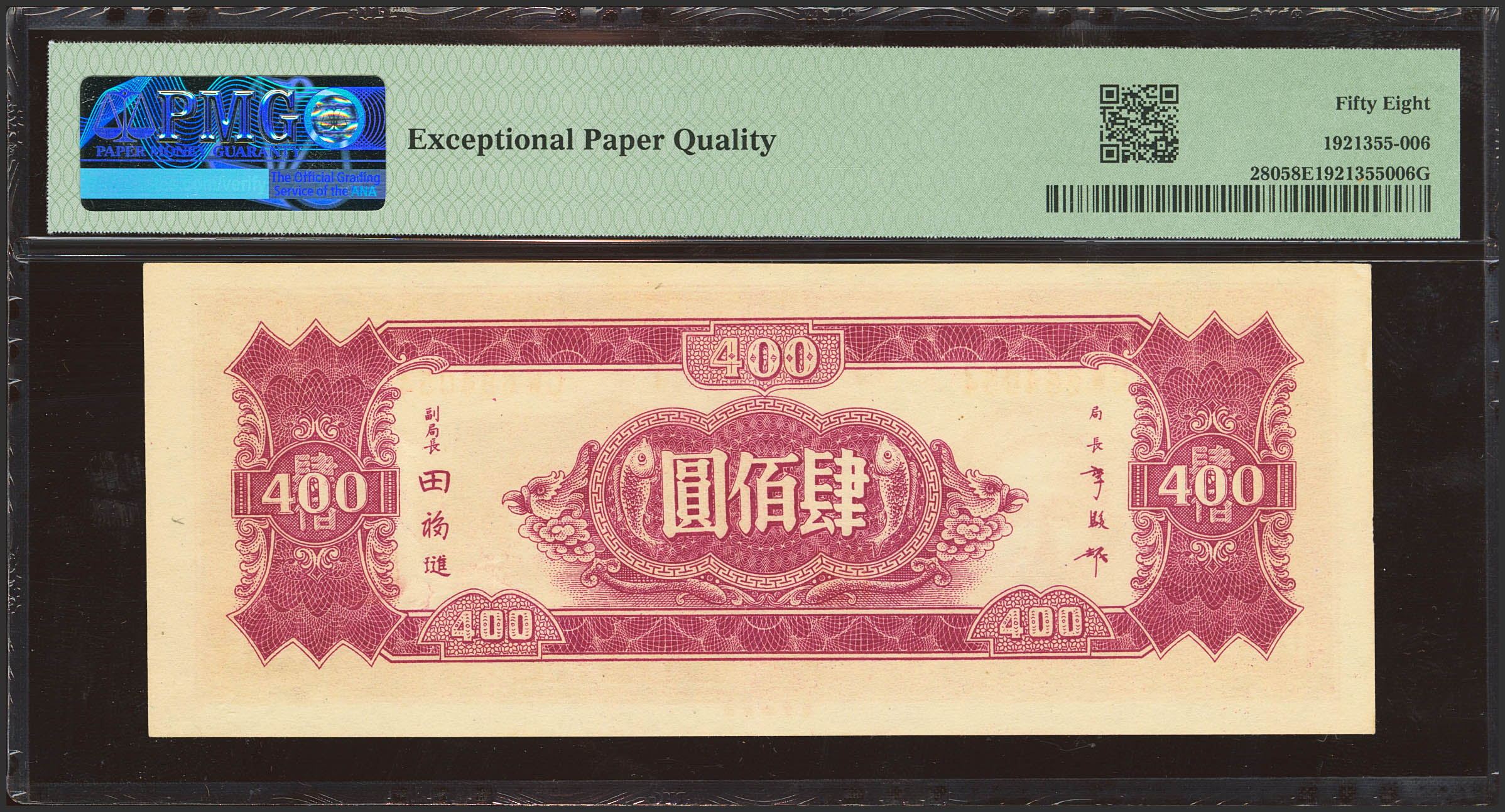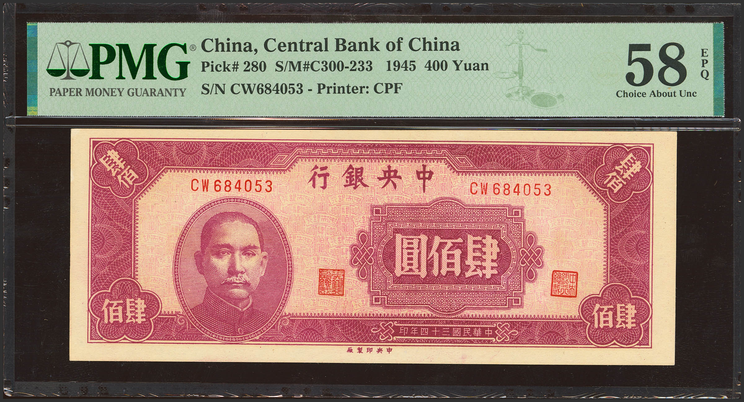 CHINA. 400 Yuan. 1945. Central Bank of China. (Pick: 280, SM: C300-233). PMG58EPQ.